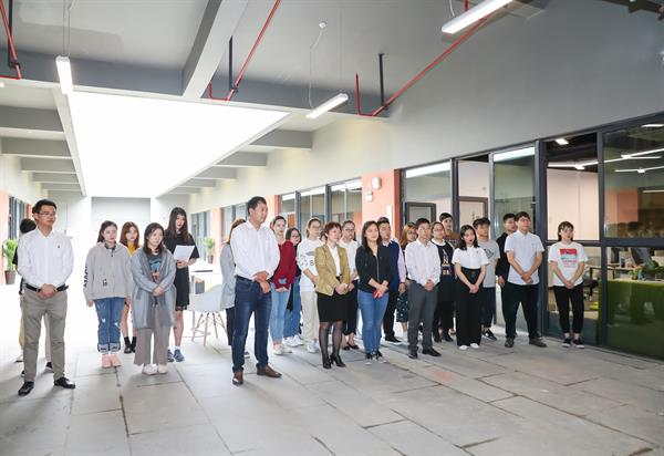 贾秀英和学生代表陈佳佳同学共同为学生活动中心揭牌,学院学生会主席殷悦代表全体同学作了发言。