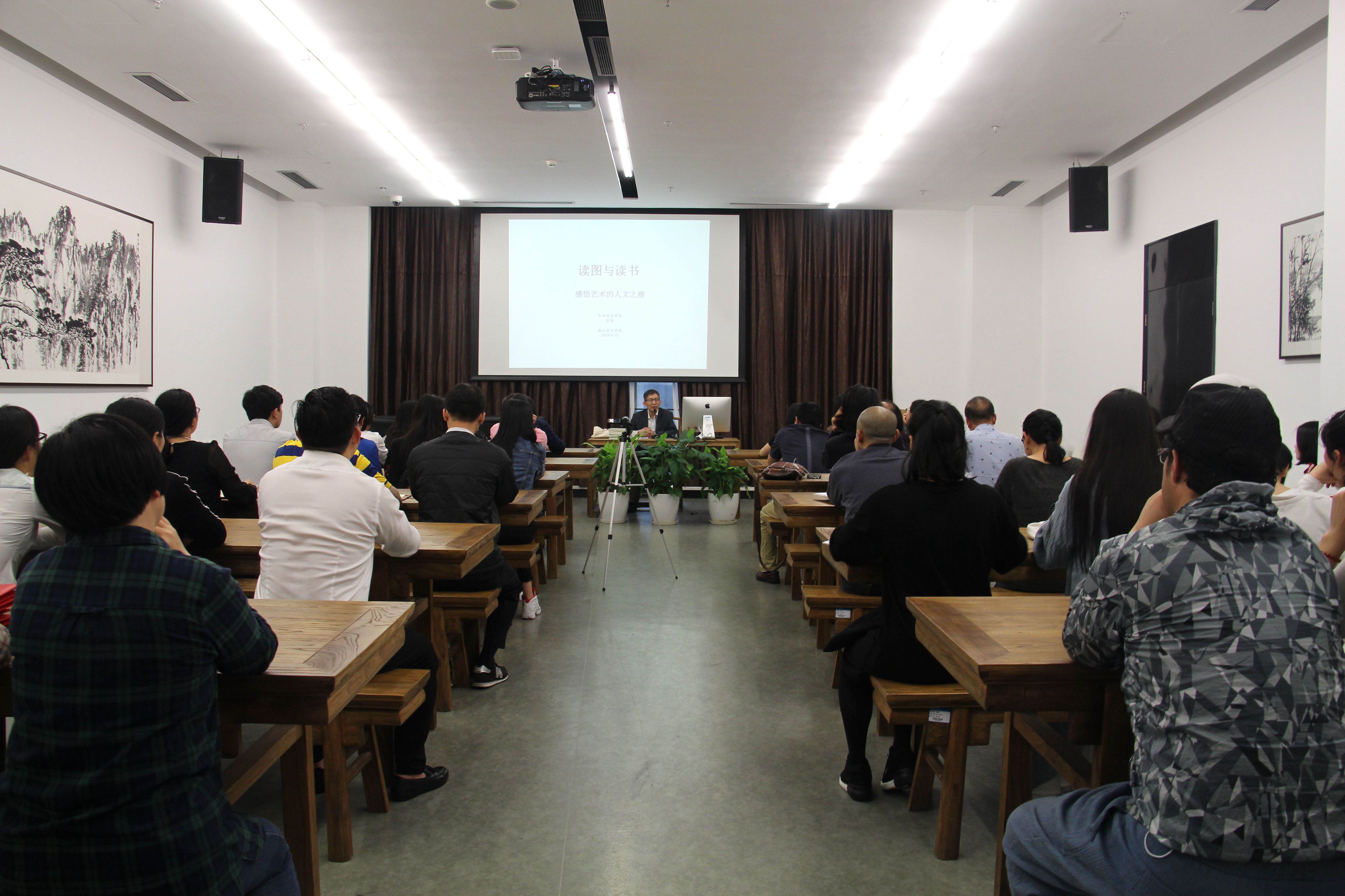 随后,师生们在浙音讲堂聆听了中国美术学院图书馆馆长张坚教授所作的题为《读图与读书——感悟艺术的人文之维》的专题讲座。张坚教授深入浅出,从读图与读书两个维度阐释了阅读之道,得到了现场师生的一致好评。