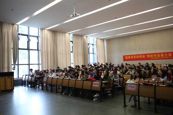 4月25日,以《健康情系你我他,预防传染靠大家》为主题的健康知识讲座在人文楼105教师举行。学院邀请转塘街道社区卫生服务中心防疫科陈璟、蒲明亮两位医师开展了一次防治结核病、艾滋病知识讲座,全院200余名学生参加聆听。