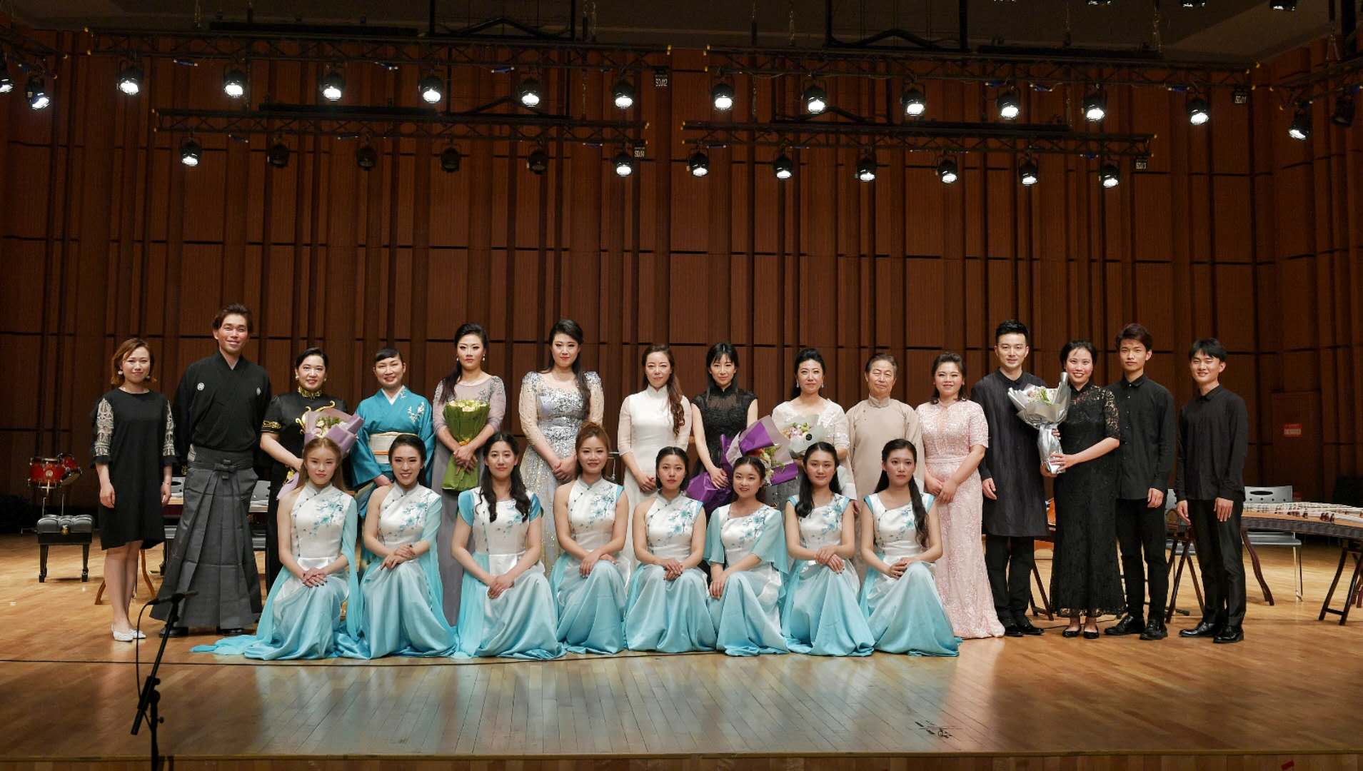 闭幕音乐会还邀请了日本山口浩司演绎津轻三味线独奏曲《津轻上河原节》、日本藤高理惠子演奏日本琵琶独奏曲《那须与一》。两位艺术家高超的演奏技艺,将日本原汁原味的本土音乐呈现到了舞台上,让师生感受到日本对历史音乐文化保护与传承的态度。此外,作为改良的日本现代音乐作品代表,由日本毛丫、山口浩司及李英姿带来的传统乐器与电子音乐结合的新作品《老北京胡同》也给我们带来耳目一新的另一种视听体验。