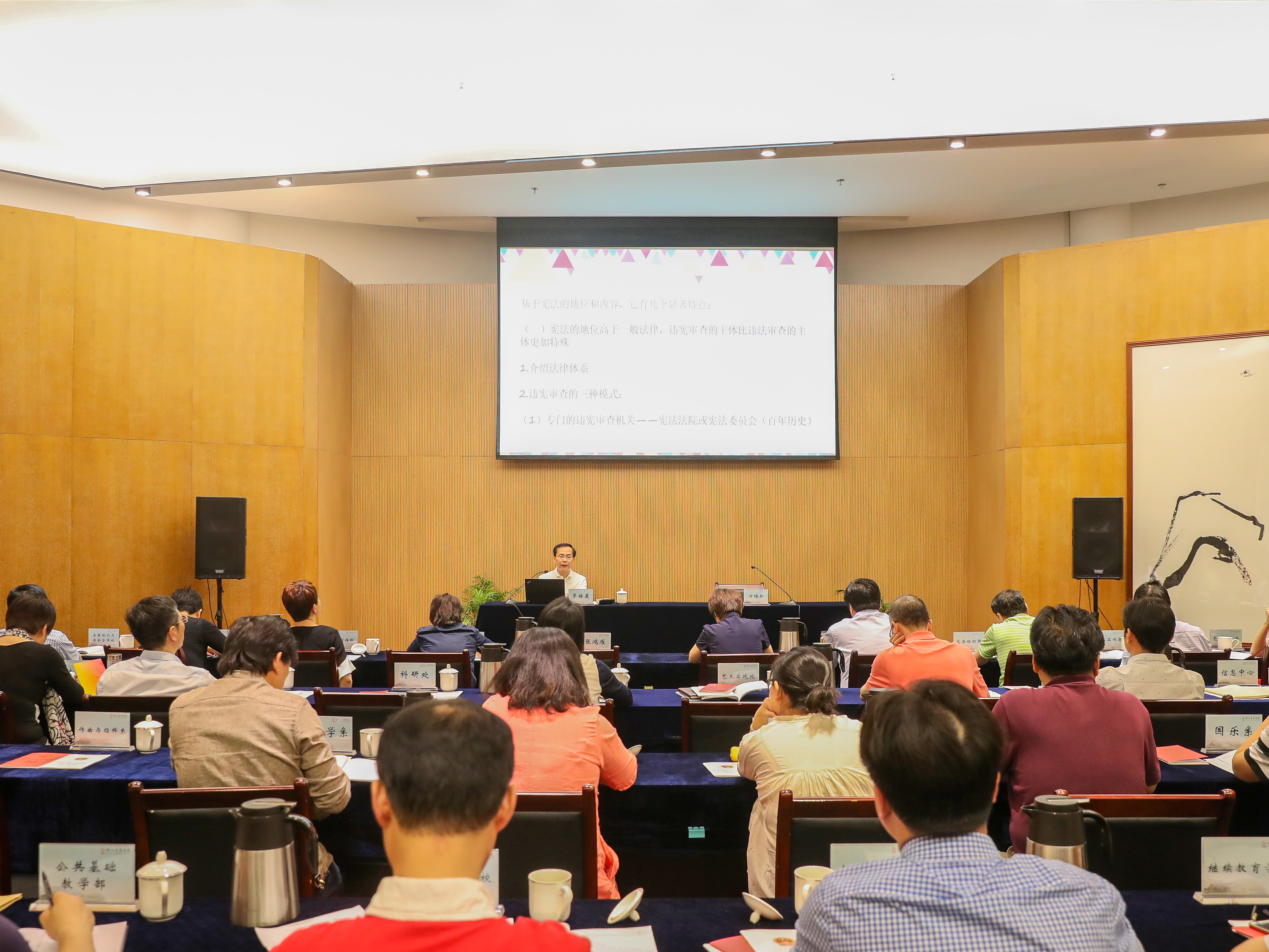 5月24日,学院党委理论学习中心组召开扩大会议专题学习研讨宪法、监察法。特邀浙江财经大学博士生导师茅铭晨教授作了题为“我国《宪法》的修改及监察制度改革”的专题辅导。学院党政领导班子成员,纪委班子成员,各部门、各二级党组织主要负责人参加。会议由学院纪委书记方培新主持。