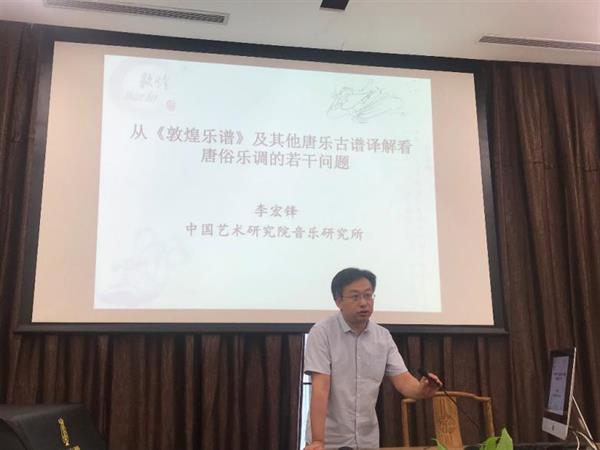 6月13日,中国艺术研究院音乐研究所副研究员、《中国音乐学》副主编、北京民族音乐研究与传播基地兼职研究员李宏锋博士应邀来院举办题为《从〈敦煌乐谱〉及其他唐乐古谱译解看唐俗乐调的若干问题》的学术讲座。讲座由学院图书馆馆长孟凡玉教授主持,各相关专业师生到场聆听。