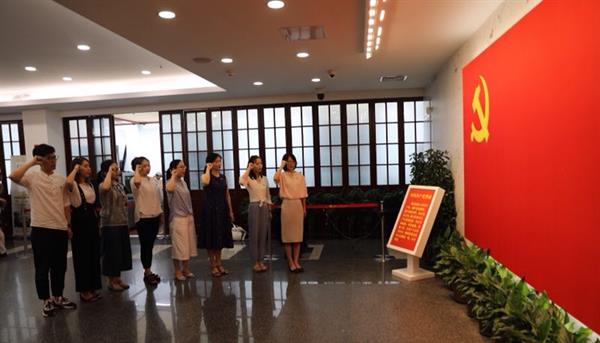 在中共一大会址纪念馆宣誓厅,面对悬挂着的巨幅中国共产党党旗,党员们一起重温入党誓词,宣誓声铿锵有力。陈列馆里的一件件展品无不承载着一段段光辉历史,将中国共产党的诞生置于中华民族伟大复兴的历史进程中娓娓道来,生动展现了中国共产党创建的历史背景、过程以及对于实现中华民族伟大复兴中国梦的历史贡献和现实意义。大家深受触动,纷纷表示必将牢记使命,谱写新的华彩篇章!