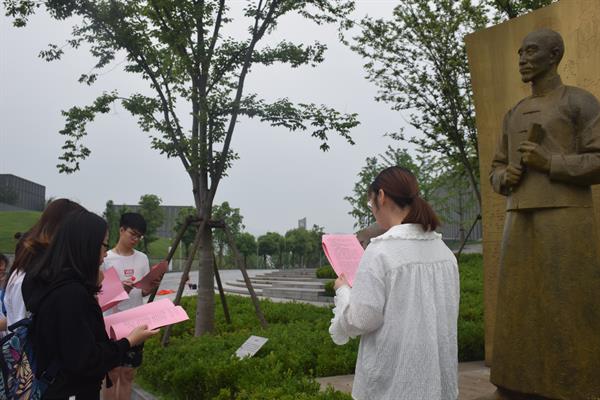 团员青年在行政楼前李叔同雕塑处,围坐共同学习《把艺术教育作为美育实施的重要途径,培育完善之人格的人才》,团员代表结合音乐教育专业特点畅谈对李叔同先生的教育思想以及美育思想的理解和感受。随后,前往中国美院(象山校区)参观2018届毕业生作品展,徜徉在美轮美奂、充满艺术构思与创想的作品中,再次感受到美的相通性。