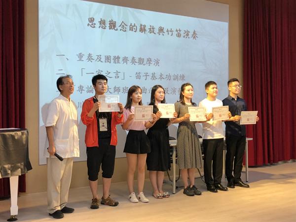 7月17日至22日,我院14位竹笛演奏专业学生在杜如松、赵琦老师的带领下赴台湾参加“琴园三十”首届台北国际笛管艺术节系列活动。本次艺术节 “琴园杯”竹笛大赛中,我院学生以专业青年组成员身份参赛,经过初赛和决赛的激烈角逐,朱超威同学获银奖,陈霖坤同学获铜奖,王丹骅、黄愉皓、游子翼等三位同学获优胜奖,朱云骄同学获评审委员会特别奖。