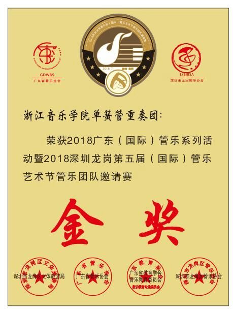 近日,学院单簧管重奏团应邀参加2018广东(国际)管乐系列活动暨2018深圳龙岗第五届(国际)管乐艺术节管乐团队邀请赛,喜获金奖。