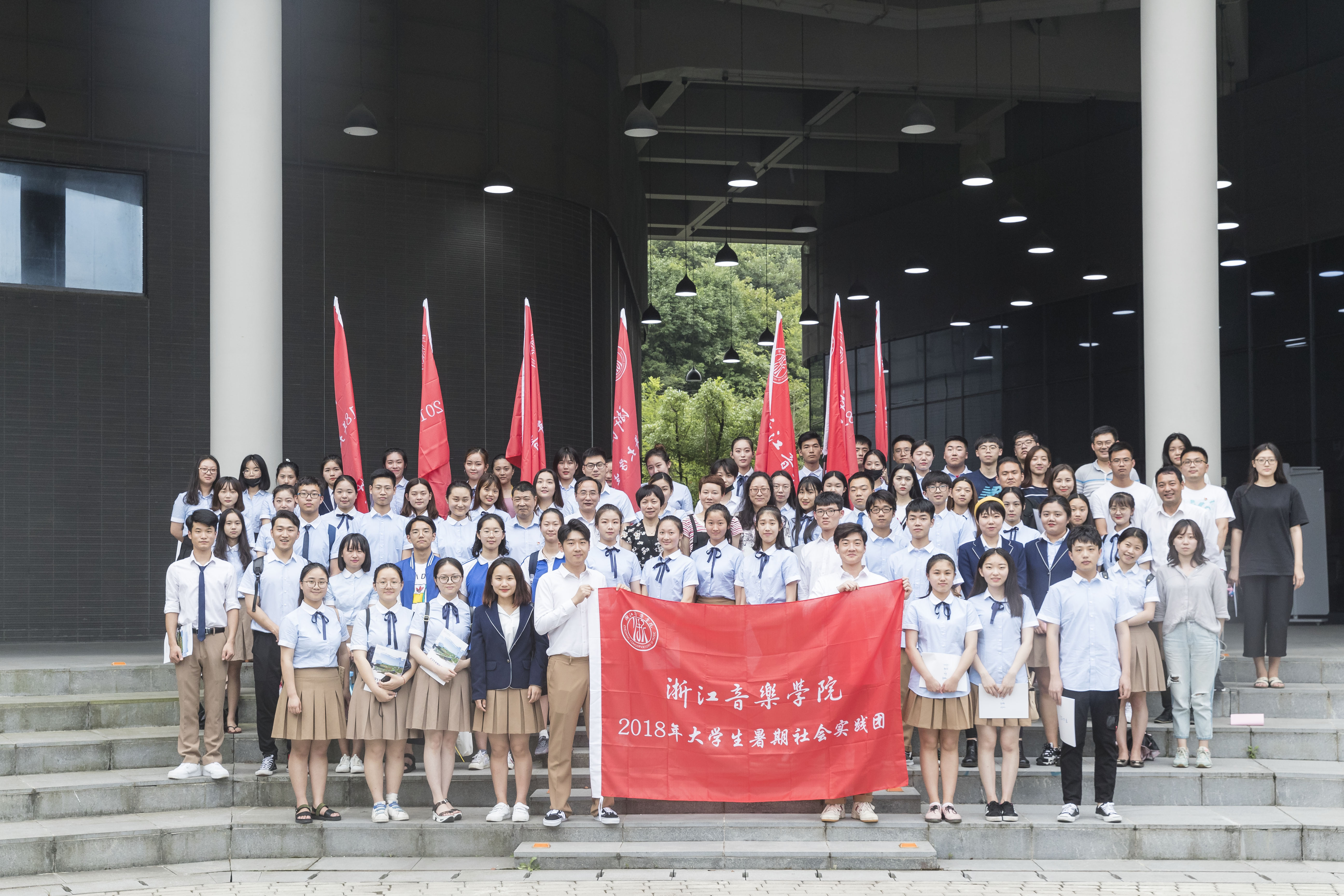 仪式上,党委宣传部、团委负责人分别就暑期社会实践活动的宣传工作、实践安全、评奖评优、成果申报等方面工作,为师生们进行了详细解读。流行音乐系陆殊茗同学代表实践学员发出倡议:一定要发扬无私奉献的志愿精神,服从安排,遵守纪律,团结协作,尽己所能完成各项实践任务。音乐教育系张冉冉老师代表指导教师发言,表示在实践中一定会严守安全底线、细化实践方案,深入基层、服务基层,带领学生们在实践中成长成才。