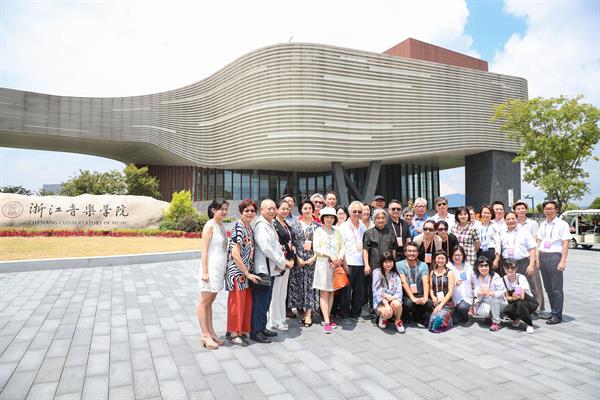 参访团首先参观了校园,随处可见的音乐元素、别具特色的美丽校园环境,以及先进的硬件设施让参访团客人们印象深刻。他们纷纷拍摄留念,并不时向随车导览的工作人员询问。参观结束后,参访团在综艺楼小剧场观看了学院宣传片,欣赏了浙江小百花越剧团的越剧名段清赏会。国家一级演员魏春芳、蔡浙飞等多位越剧名家登台献艺,为在场的两岸戏剧界同仁展示了江南越剧的独特魅力。掌声与喝彩声经久不息,两岸戏剧界人士积极互动交流,现场气氛热烈。