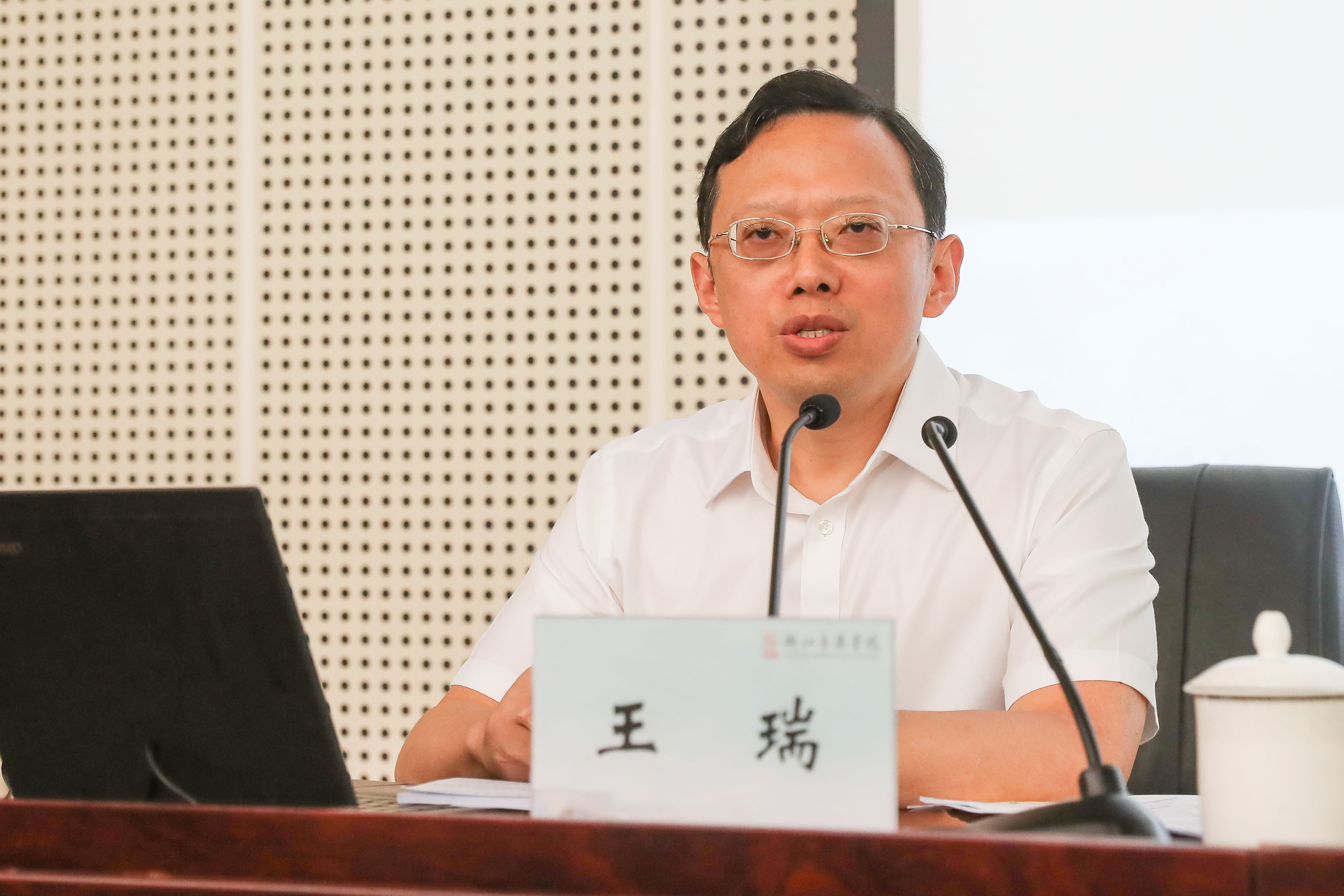 会上,省文化厅党组书记、厅长,学院党委书记褚子育作了题为“坚定文化自信 助推文化浙江建设”的报告。他从文化的内涵、文化的功能等方面深刻阐述了文化建设的重要意义,深入剖析了文化浙江建设的主要目标和重要举措,并就浙音如何坚持立德树人这一根本任务,积极助力文化浙江建设提出了具体要求。褚子育强调,全院上下一定要把握好新时代文化浙江建设新要求,在传统文化的挖掘保护、高层次人才的储备和高水平人才培养、艺术精品生产、文化产业发展、对外文化交流输出等方面,勇于担当、奋发有为,以更加饱满的热情、更加务实的作风、更加有力的举措,加快推进学院学科建设、人才培养等各项重点工作,为更好更快地把文化浙江的蓝图变成现实作出浙音人应有的贡献。