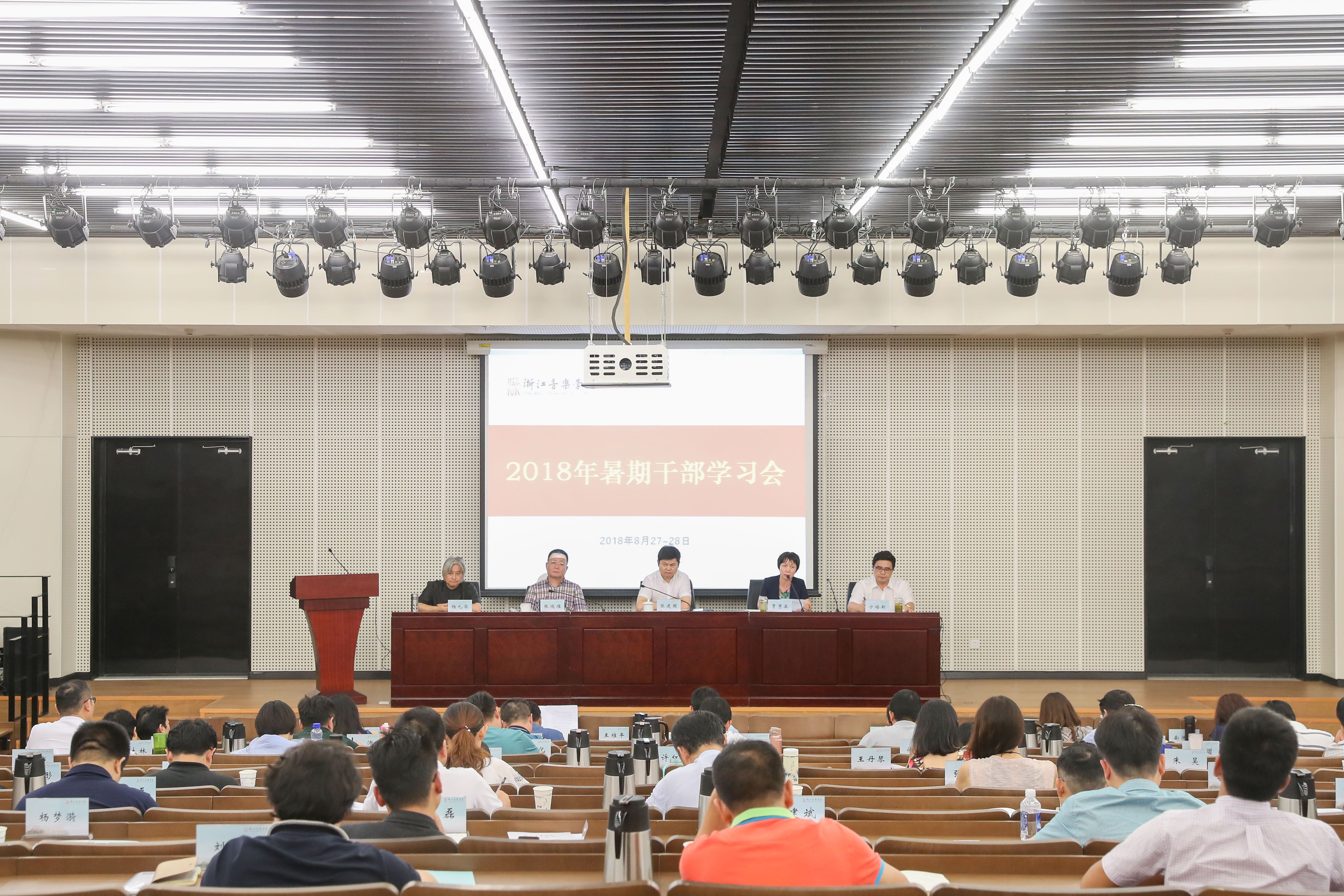 8月27日——28日,学院召开2018年暑期干部学习会。会议坚持以习近平新时代中国特色社会主义思想为指导,深入学习习近平总书记对浙江工作的重要指示精神和省委十四届三次会议精神,以“全面加强内涵建设 切实提高核心竞争力”为主题,紧紧围绕高水平一流音乐学院建设目标,聚焦学科建设、人才培养等重点工作,实现学院更快更好发展,进行了深入交流和专题研究部署。学院领导、全体中层干部、学术委员会成员、各系(部)教研室主任、高层次人才代表、科研创作平台负责人、民主党派负责人等120余人参加会议。