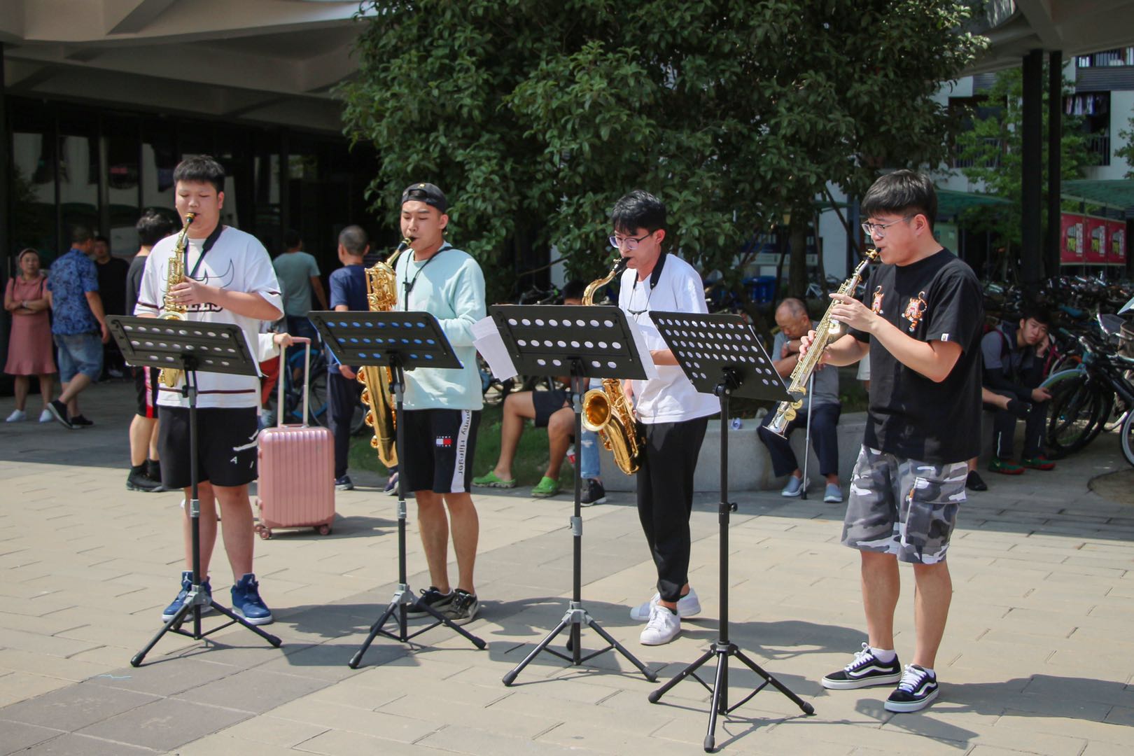 而浙音学生还有高超的才艺水平,新生们不仅拖着行李箱,还要背着各种各样的乐器来上学。