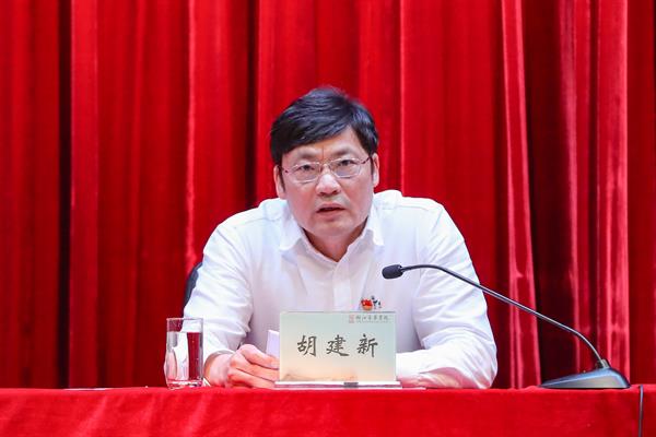 随后,胡建新还和大家谈到了“共产党人的理想信念”这个问题。他指出,共产党人的远大理想是共产主义,要时刻相信共产主义一定会实现。中国共产党人的共同理想是中国特色社会主义,要真正促进人的自由全面发展,就是要迈向共产主义。在谈到如何推进学院“高水平一流”发展时,胡建新强调,不能只坐而论道,也不能只有愿望而不思考实现路径。推进学院“高水平一流”发展更重要的在于立心与力行、实践与担当,在于事必尽善。全院上下一定要加强党的基层组织建设,以《中国共产党支部工作条例》为依据,扎实推进党支部标准化、规范化建设;要加强干部队伍建设,守初心、担使命,不断增强“四个意识”、坚定“四个自信”、做到“两个维护”, 使党员干部筑牢信仰之基、补足精神之钙、把稳思想之舵,始终保持党的先进性和纯洁性。