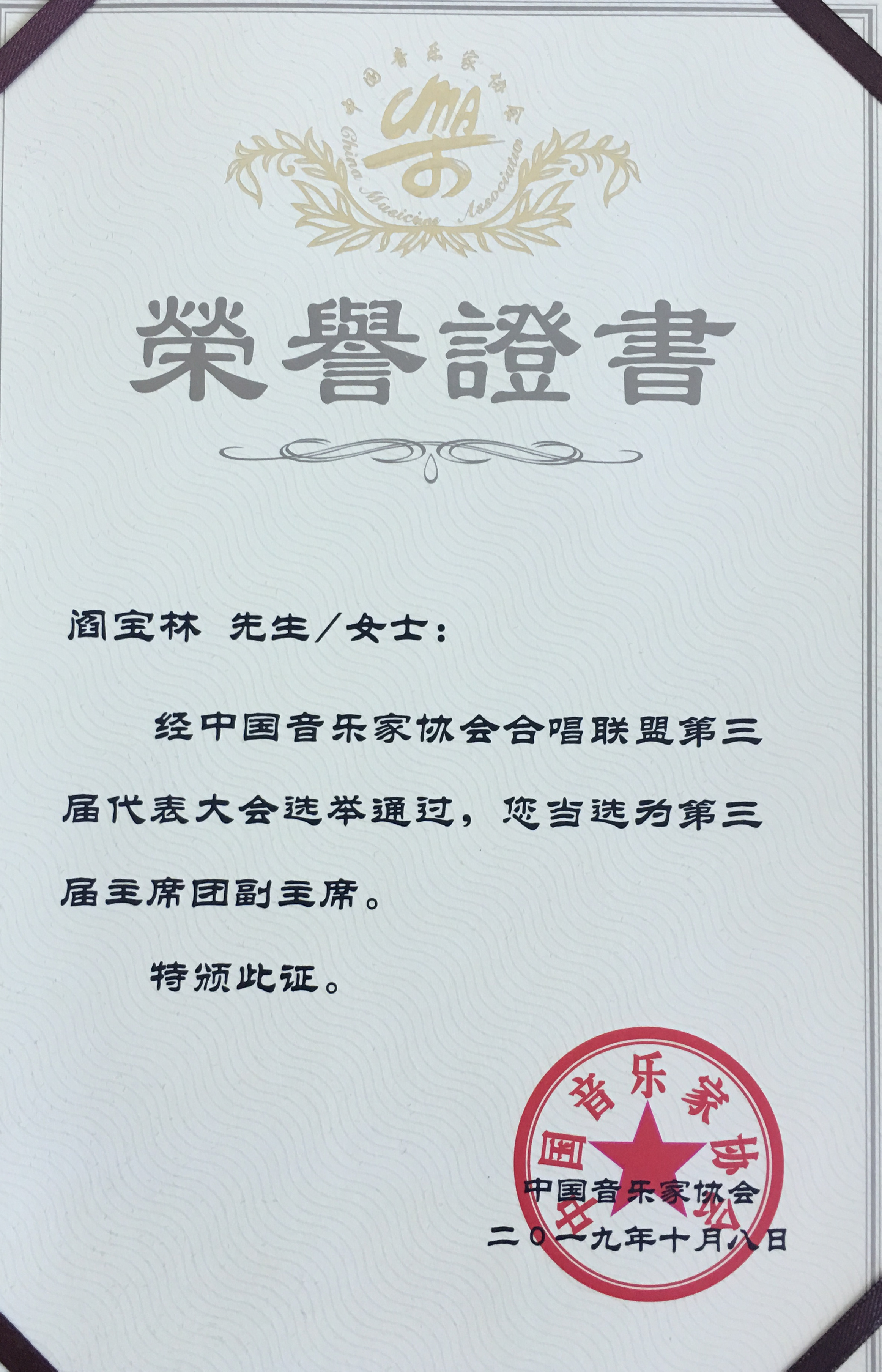学院“八秒”合唱团艺术总监阎宝林教授当选中国音协合唱联盟副主席