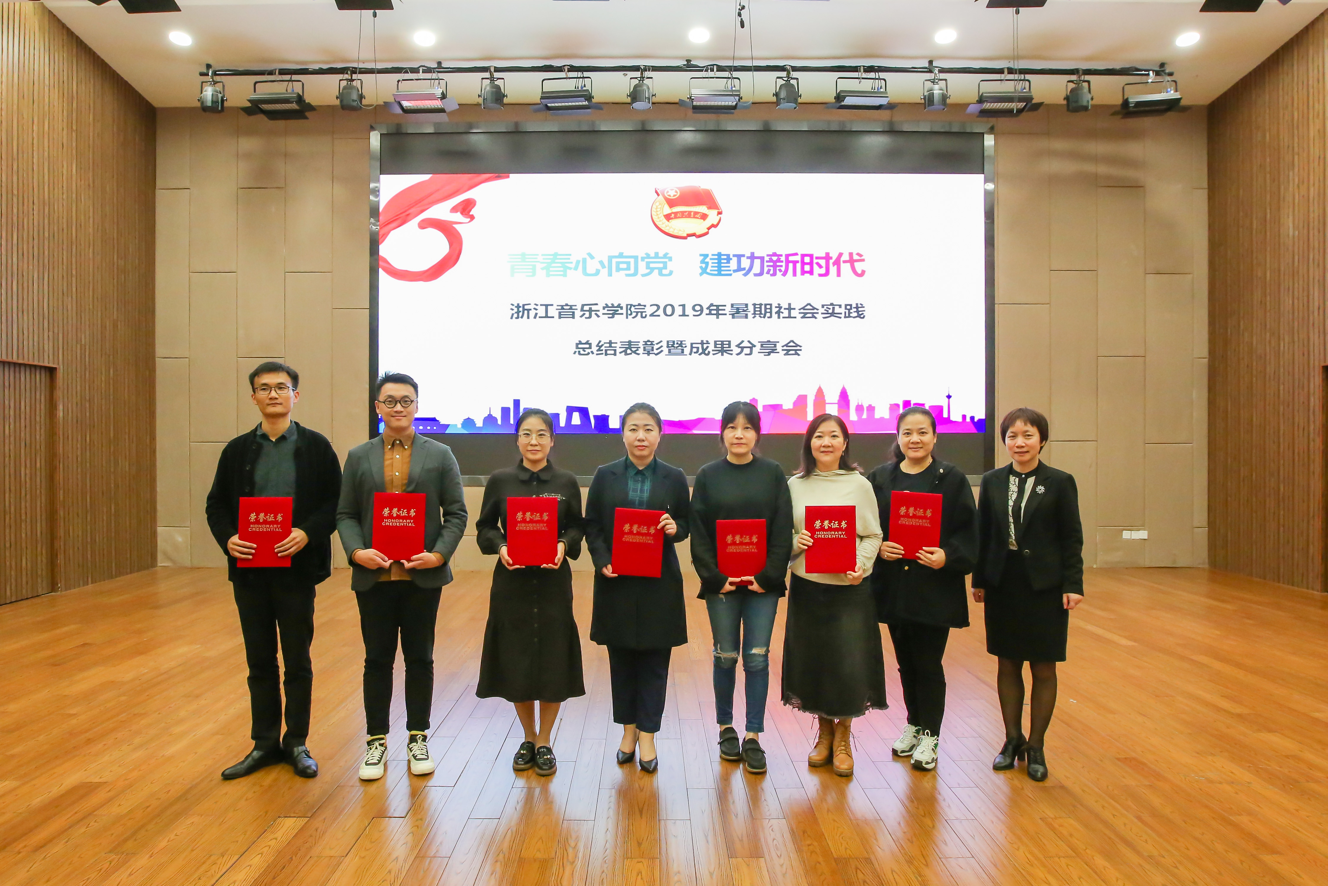 会议从“传承革命精神,牢记初心使命”“服务乡村振兴,助力文化浙江”“深入开展‘三服务’,精准帮扶有实效”等三个方面全面总结了2019年暑期社会实践工作,并对学院2019年暑期社会实践先进团队和先进个人进行了表彰颁奖。“快乐音乐教室”实践团等7支团队荣获“社会实践先进团队”荣誉称号,钱云姗等8名教师荣获“社会实践优秀指导教师”荣誉称号,刘轩志等72名学生荣获“社会实践先进个人”荣誉称号。