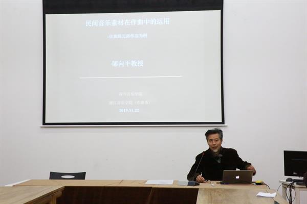 首页 > 浙音新闻网 > 校园动态 四川音乐学院邹向平教授来院讲学 来源:作曲与指挥系 作者:张亚鑫 时间:2019-11-25 人气: 11月22日下午,四川音乐学院作曲系邹向平教授应邀为我院作曲与指挥系师生作了题为“民间音乐素材在作曲中的运用”专题讲座。邹向平围绕作品展开讲座,他重点提到了素材的形式、素材与作品的关系、采风经历等,并强调这些要素与作品之间有着紧密的联系。现场,邹向平还与师生现场互动交流,展开深入探讨。通过这次讲座,作曲与指挥系师生对民间音乐素材在作曲中的运用有了更深入的了解。 返回 打印 下一篇: