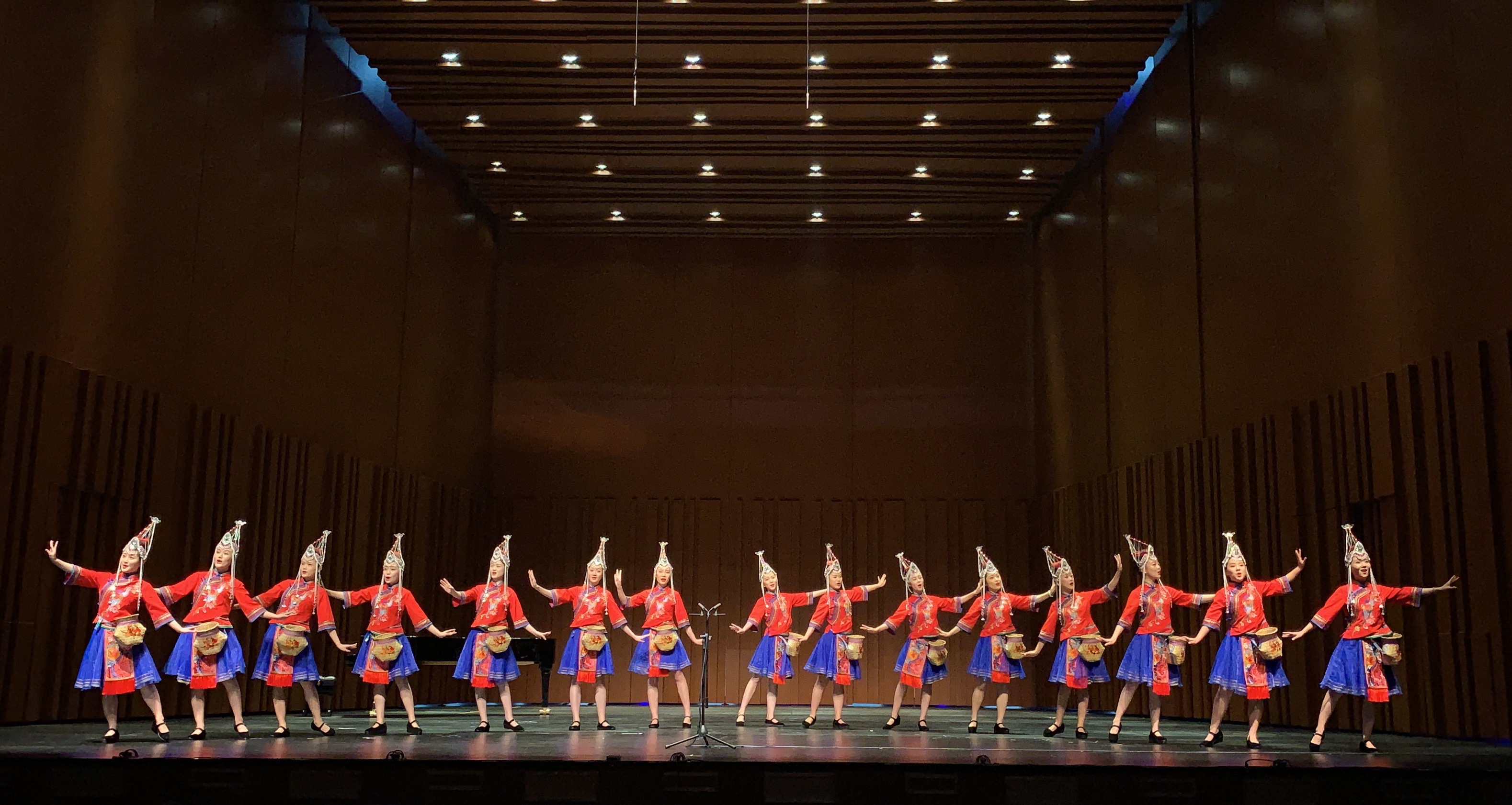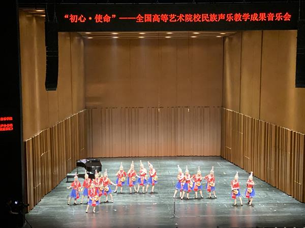 当天晚上,《初心•使命——全国音乐院校民族声乐教学成果音乐会》在上音歌剧院隆重举行。全国11所独立设置音乐学院及3所综合艺术学院师生登台献唱,我院声乐歌剧系“畲凤组合”15位学子以全场唯一的“无伴奏”形式,完美演绎了女声四部合唱《畲家姑娘采茶忙》(指导教师:许红霞、金瑶;词曲:吴涤)。其中的畲语领唱念白与合唱部分交相呼应,旋律与节奏柔美舒展、动静结合,将畲族原生态山歌风格与畲家姑娘对美好生活的向往表现得淋漓尽致,获得了当场近千名观众的高度赞赏。本场音乐会代表了当今高等艺术院校民族声乐教学及表演的最新成果、审美追求及发展方向,地方特色鲜明,表演水平高,令人印象深刻。