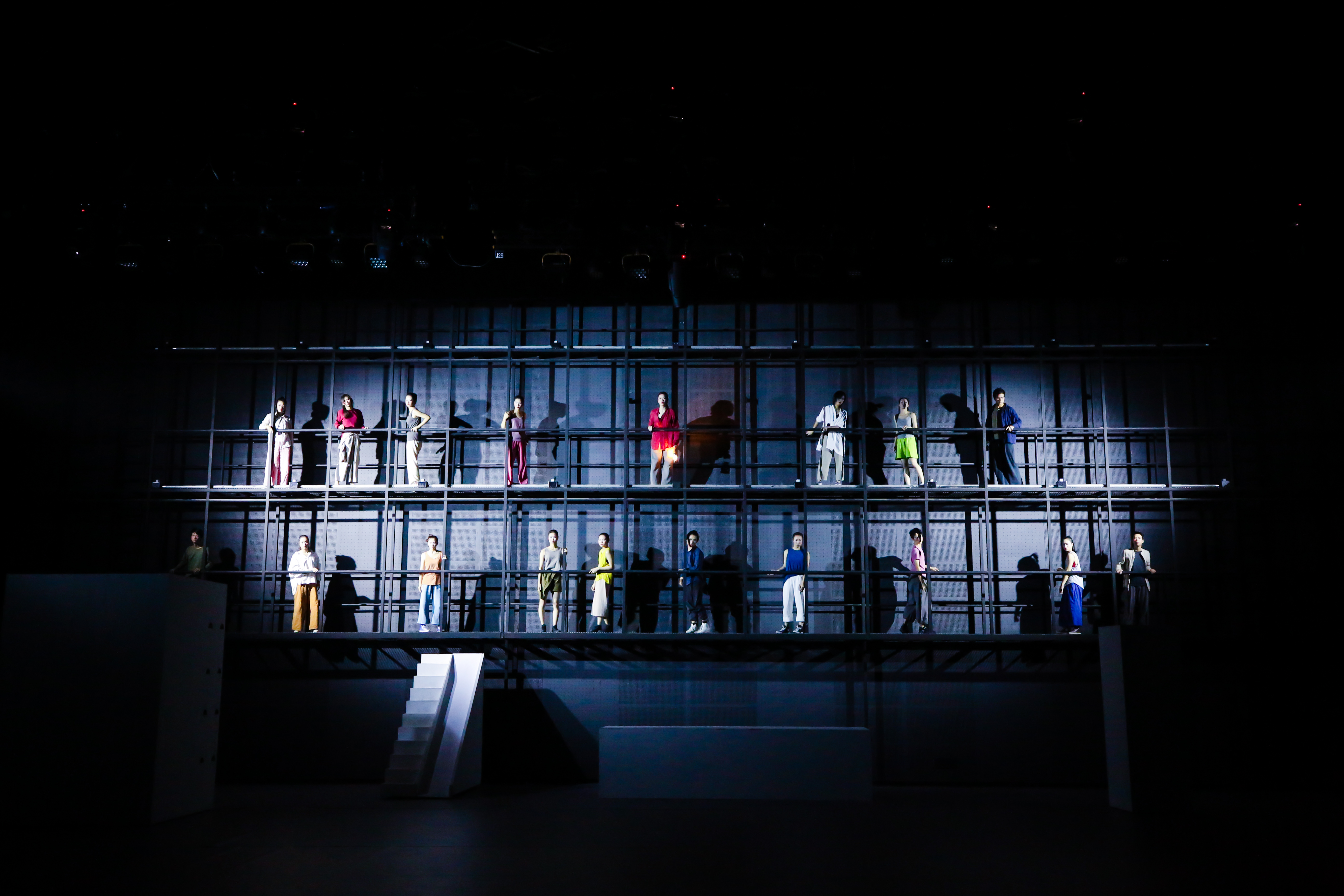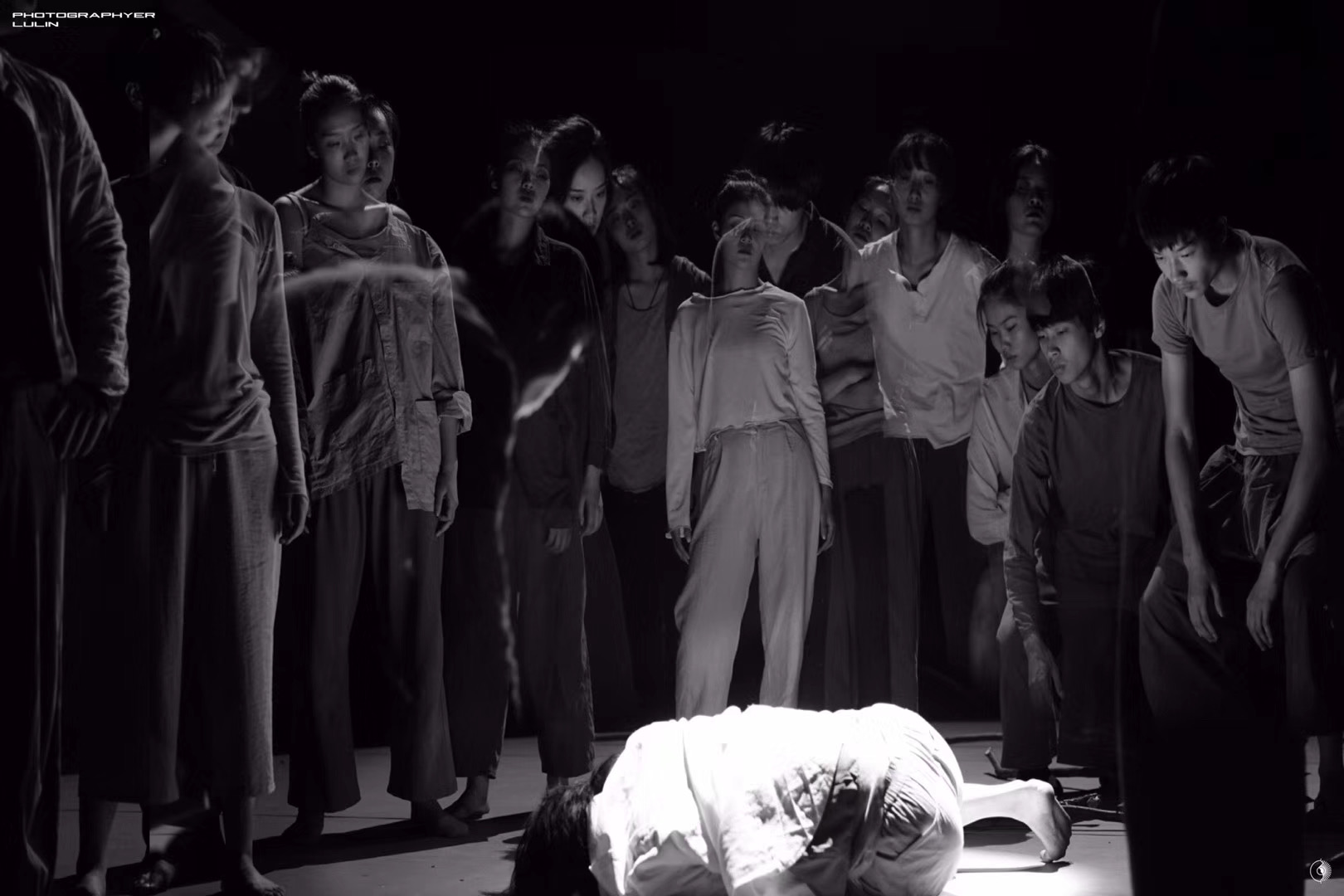 跨界作品《渔樵耕读》由舞蹈系青年教师程龙、马佳宏共同创作,作曲与指挥系张昕副教授作曲承担钢琴、打击乐的即兴演奏,上海民族乐团唐一雯担任中阮即兴演奏,舞蹈系学生陈秀豪、刘雅婷、乐欢、傅川等19人为即兴舞者。演出在一个可塑性极强的实验剧场进行,变换的空间、移动的光影、在舞台和现实中游走的舞者、即兴创作的演奏者和哲理性视频的跨界综合呈现,给观众带来了一场极富冲击力的视听盛宴。