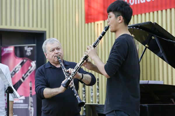 音乐会前, Collins教授还举办了单簧管大师班,他强调了基本功、音准的重要性以及乐句的走向、高低音的连接等问题,充满激情的引导与启发式教学,使学生深感受益。