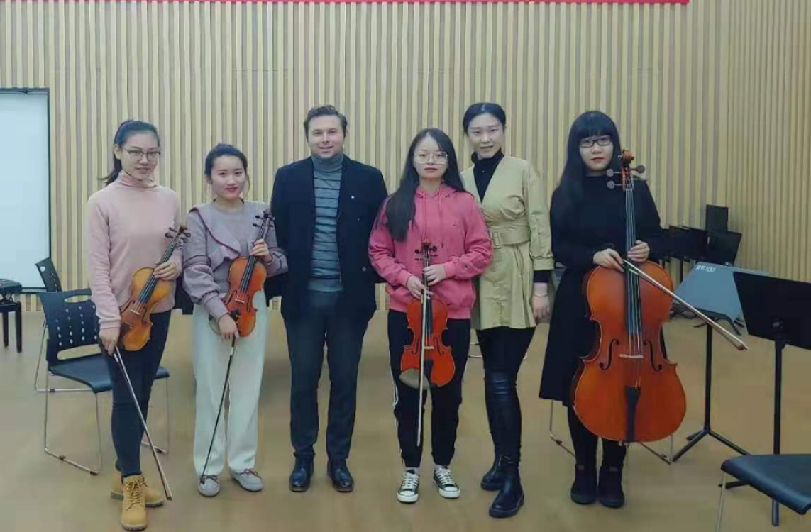 在单簧管、低音提琴和钢琴三重奏演奏的博泰西尼《A调单簧管、低音提琴和钢琴》三重奏后,Namirovsky教授对三重奏里每个人的音乐角色进行了更好的定位,并指出室内乐中演奏时要注意声部间的音乐交流。最后,弦乐四重奏演奏海顿《d小调第七十六弦乐四重奏》,Namirovsky教授提出要对音乐有严谨、细腻的态度,强调要注重曲子的色彩变化和。同学们在课堂上与老师进行了紧密的互动,并运用多种生动形象的例子和深情表演示范来描述该如何表达曲中的感情。