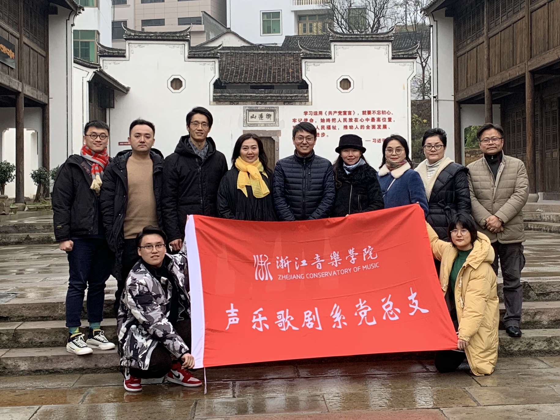 12月18日,声乐歌剧系党总支赴义乌分水塘村陈望道故居开展主题党日活动。每位党员师生怀着无比崇敬的心情瞻仰陈望道故居及当年埋头翻译《共产党宣言》的简陋柴房,共同回味信仰的味道。