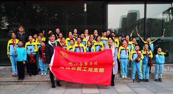12月2日下午,管弦系教工党支部前往浙江省百年名校盛誉的杭州市胜利实验学校开展义务志愿服务活动,现场指导小学生管弦乐团30余名师生排练演奏。
