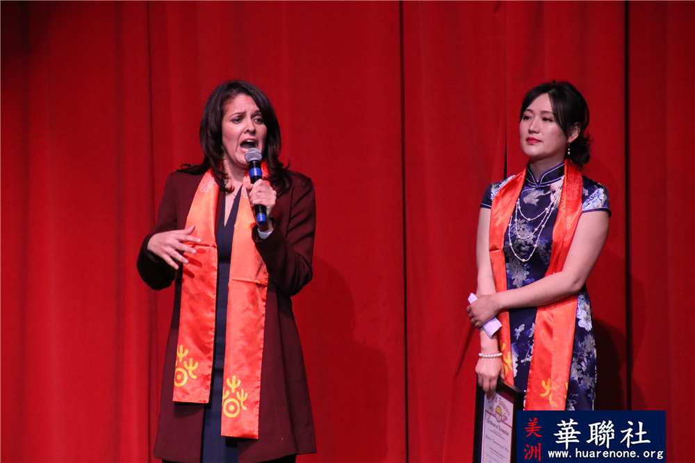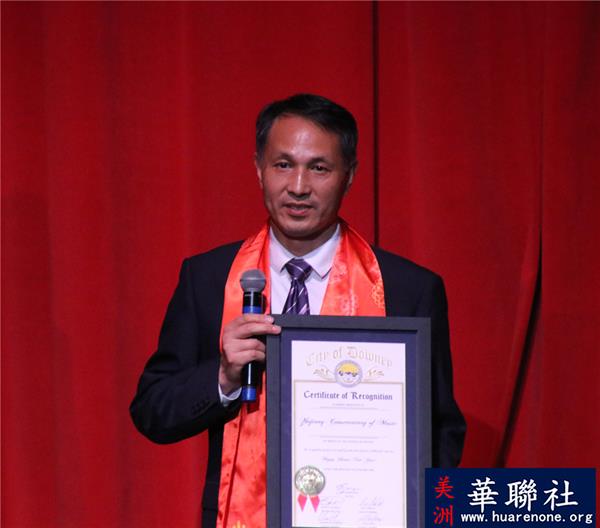 Downey市副市长Blanca Pacheco也来到晚会现场,她感谢美国魅力中国中文电视台把浙江音乐学院艺术团这么优秀的表演团队带到该市,让该市的民众有机会欣赏到来自中国的年轻艺术家的表演。她表示,Downey是一个多族裔的城市,这台精彩的演出有助于对于中国和中国文化的了解。她还向浙江音乐学院艺术团团长裘平君颁赠贺状。