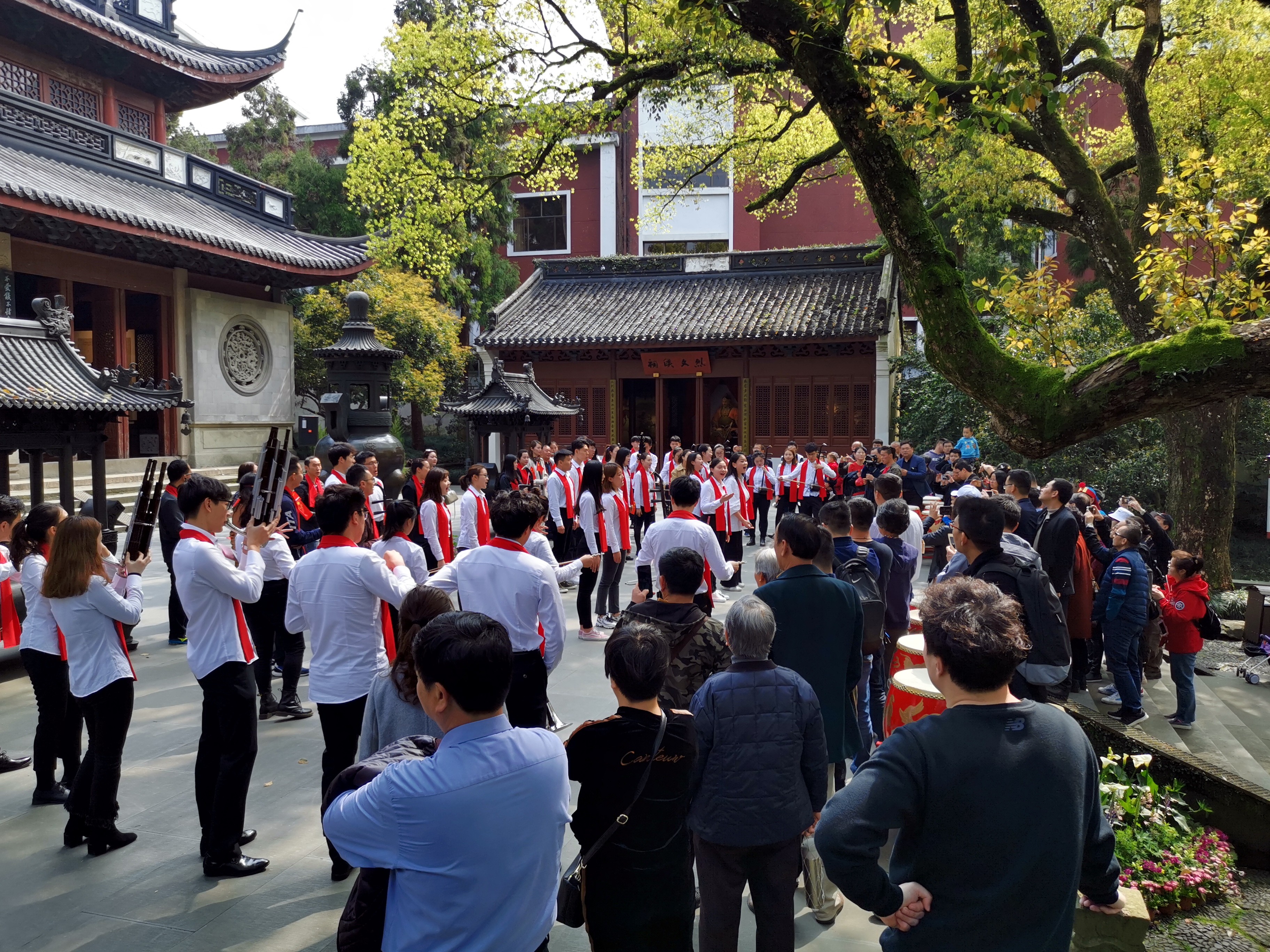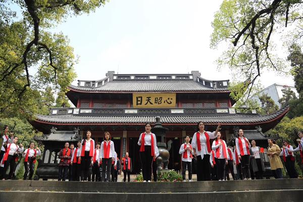首页 > 浙音新闻网 > 校园动态 我院学生参加纪念岳飞诞辰916周年快闪活动 来源:艺术实践处 作者:郭启乐 时间:2019-04-02 人气: 3月30日,由我院艺术实践处组织,声乐歌剧系、国乐系学生在岳王庙共同参加纪念岳飞诞辰916周年快闪音乐活动。春意盎然,游客如织。当《我和我的祖国》音乐声响起时,四面八方的游客相聚而来。学生们以新颖的形式,动听的旋律,深情演绎这首歌曲,使听众沉浸其中。游客听到美妙的音乐,纷纷表示,这次活动意义深远,在美丽的西子湖畔,在具有浓厚历史气息和充满爱国主义情怀的岳王庙里,感受这首爱国歌曲,民族的自豪感油然而生,伟大祖国的辉煌魅力深深印刻在他们的心中。 返回 打印 下一篇: