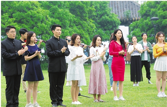 “你是一树一树的花开,是燕在梁间呢喃,你是爱,是暖,是希望,你是人间的四月天!”伴着林徽因的《你是人间的四月天》,伴着悠扬的朗诵声,伴着西湖的醉人春色,由共青团浙江省委、浙江日报报业集团主办,浙视频、钱江晚报和浙江音乐学院承办的“创造·新青年,唱响五四”快闪活动近日在西湖天地大草坪上演。