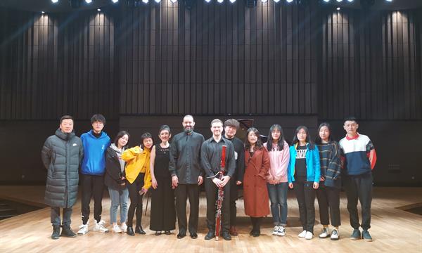 3月31日晚,我院管弦系特邀泰国玛希隆大学音乐学院弦乐室内乐系主任Paris Parashoudis、木管系主任Christopher Schaub及钢琴家Eri Nakagawa等艺术家在现代音乐厅举行泰国玛希隆大学音乐学院室内乐专场音乐会。