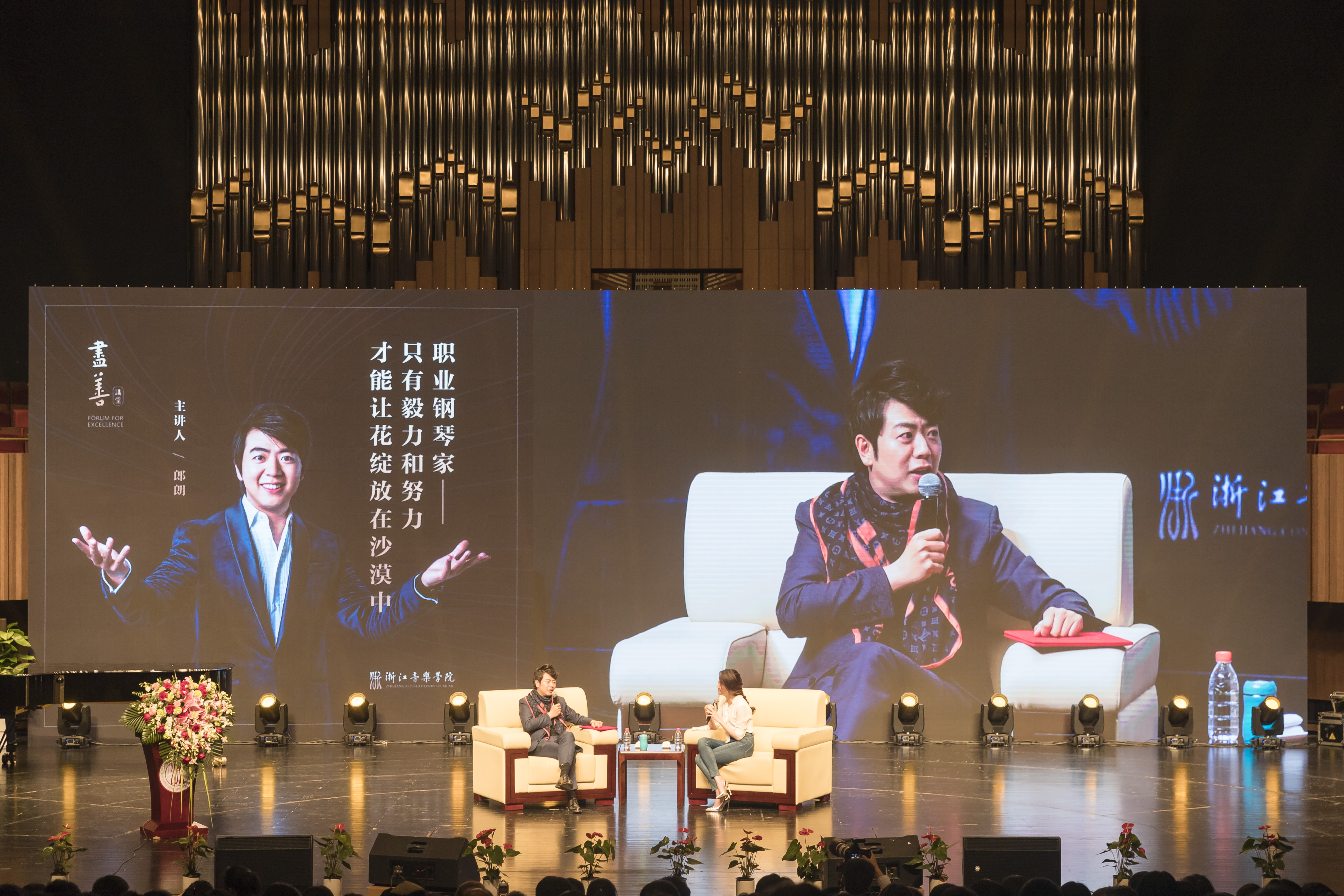 5月6日晚,浙江音乐学院“尽善讲堂”第三讲在音乐厅如期而至。著名钢琴演奏家郎朗以“职业钢琴家——只有毅力和努力才能让花绽放在沙漠中”为题,通过现场访谈互动的形式,与浙音学子畅谈音乐之路。