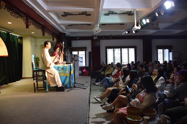 5月6日下午,在南鸿雁教授带领下,音乐学系50余名学生赴杭州目前唯一的专业书场——大华书场,赏听评弹,感受传统曲艺艺术魅力。