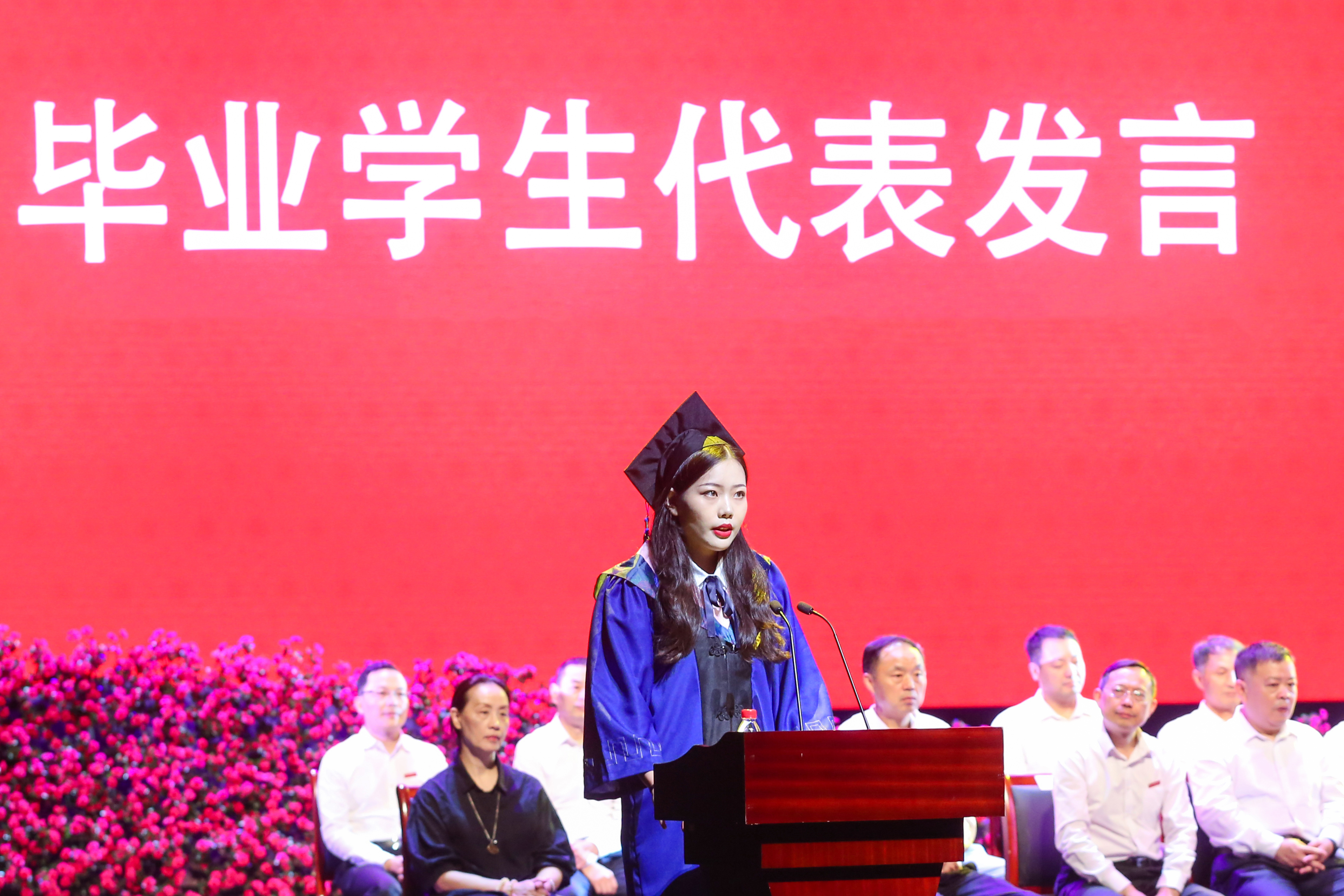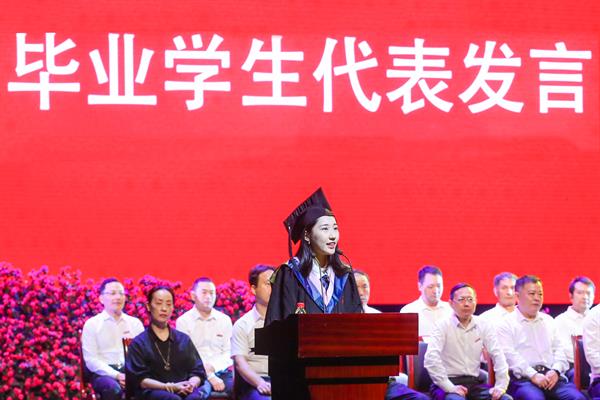 音乐学系研究生张源宁同学、钢琴系本科生黄逍航同学分别代表研究生、本科生毕业生发言,感谢母校悉心栽培。国乐系青年教师刘乐代表全体教师发言,送上教师满满祝福。