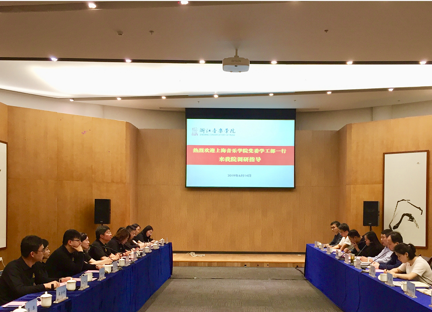 首页 > 浙音新闻网 > 校园动态 上海音乐学院党委学工部一行来院调研交流 来源:学工部 作者:蔡高小碧 时间:2019-06-18 人气: 6月14日上午,上海音乐学院党委委员、党委学工部部长郭恺一行来我院考察调研交流,党委学工部、团委、创业学院等相关部门负责人及辅导员代表、学生代表陪同调研。双方就新时代背景下加强辅导员队伍建设及推动辅导员专业化职业化发展、建立“三全育人”机制体制、实施推进“资助育人”“就业创业”“暑期社会实践”等工作开展了座谈交流,并就新形势下如何加强和改进音乐艺术类高校思想政治教育工作进行了探讨交流。期间,还分别与我院音乐教育系、流行音乐系就“高校学生美育与德育”建设进行了专题交流。 返回 打印 下一篇: