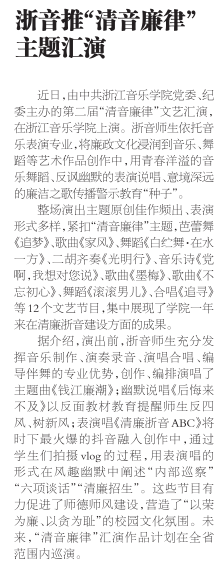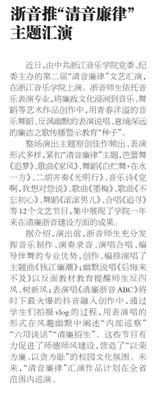 首页 > 浙音新闻网 > 媒体传真 音乐周报:浙音推“清音廉律”主题汇演 来源:宣传部 作者:宣传部 时间:2019-06-27 人气: 新闻来源:A10_Print(19).pdf 返回 打印 下一篇: