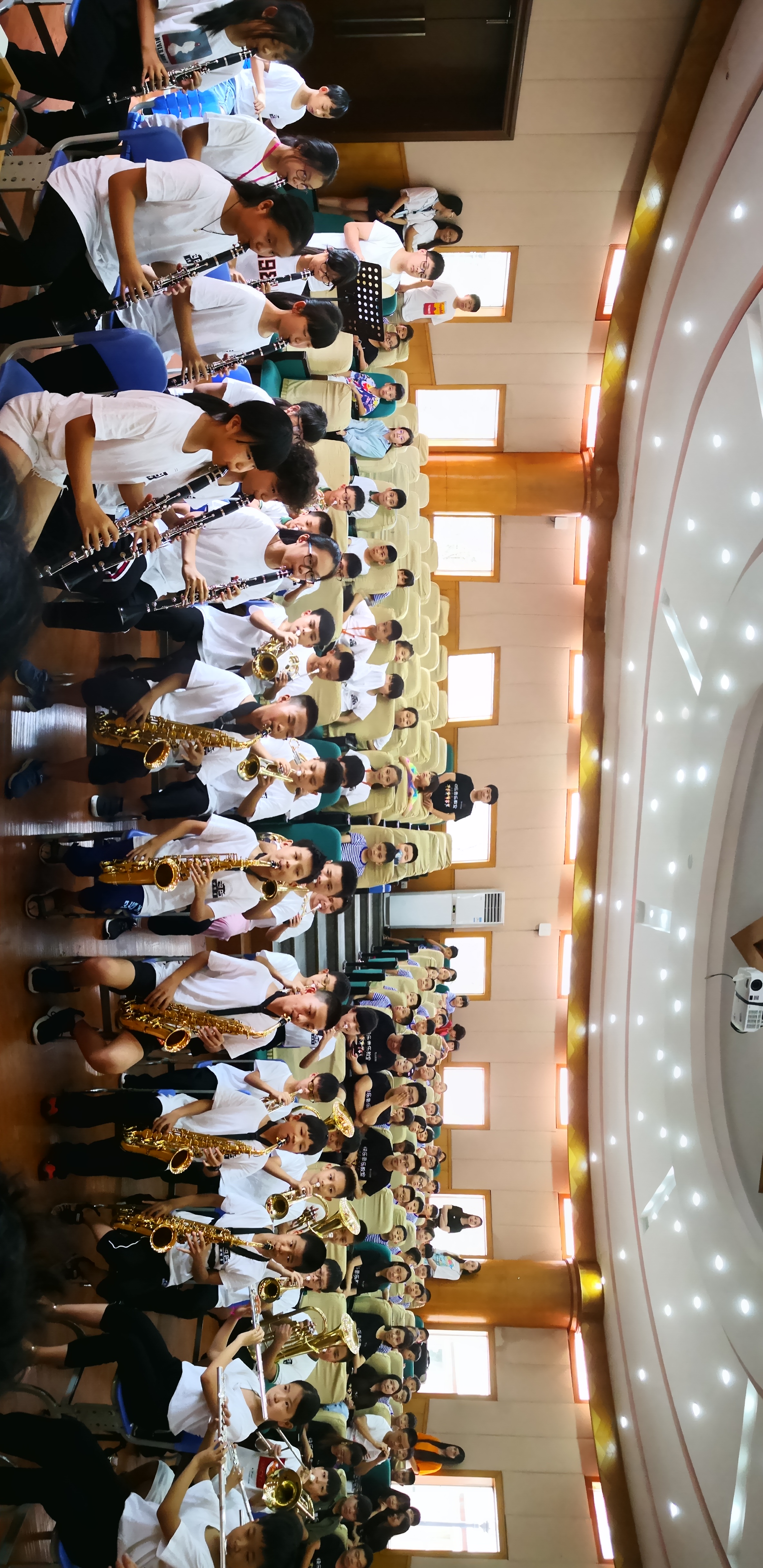 仪式上,管弦系、荣怀学校小学部领导共同为“大学生社会实践基地”揭牌。随后,近50名小学生组成管乐团演奏了《同一首歌》,充分展示了管弦系师生对接指导的教学成果。