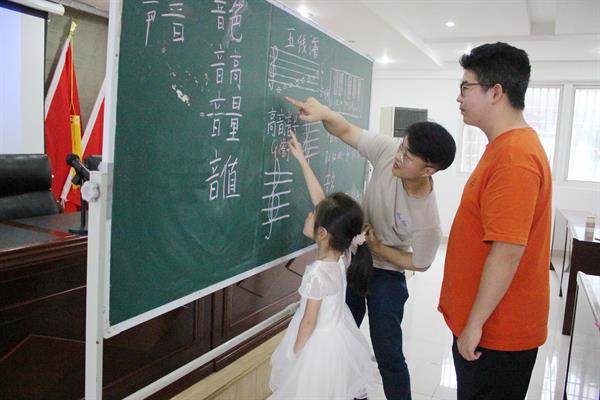 音乐夏令营以音乐普及性教育为重点,注重儿童音乐兴趣的培养,每天授课6小时,共开设音乐赏析、乐理知识、歌曲教唱、舞蹈教学、红色音乐文化读书会等课程。在奥尔夫音乐课上,孩子们跟随节拍律动慢慢掌握基础的音阶唱名;在乐理教学课上,他们通过模拟钢琴训练,感受黑白键带来的音乐魅力。期间,孩子们还分阶段接受了国学、青春健康、禁毒防艾、平安自护等内容的教育。