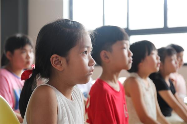 音乐夏令营以音乐普及性教育为重点,注重儿童音乐兴趣的培养,每天授课6小时,共开设音乐赏析、乐理知识、歌曲教唱、舞蹈教学、红色音乐文化读书会等课程。在奥尔夫音乐课上,孩子们跟随节拍律动慢慢掌握基础的音阶唱名;在乐理教学课上,他们通过模拟钢琴训练,感受黑白键带来的音乐魅力。期间,孩子们还分阶段接受了国学、青春健康、禁毒防艾、平安自护等内容的教育。