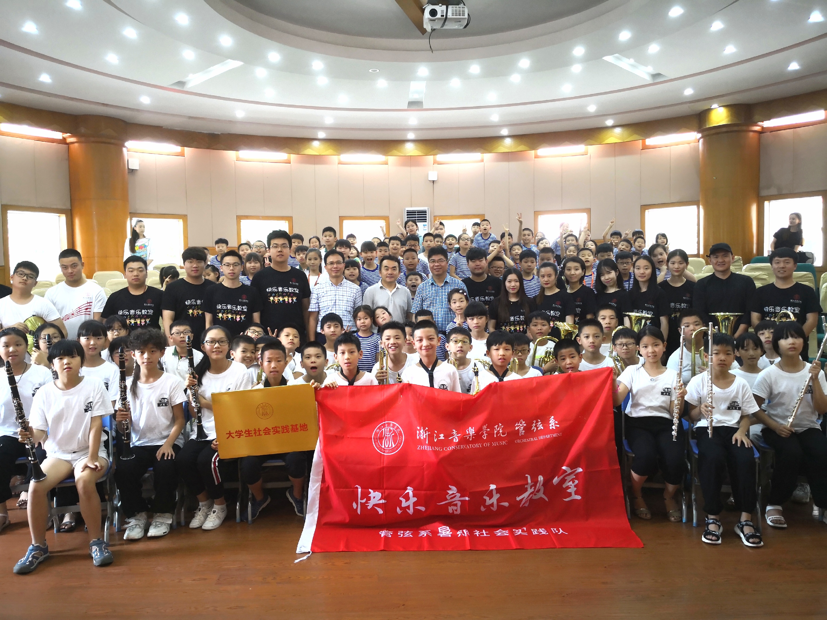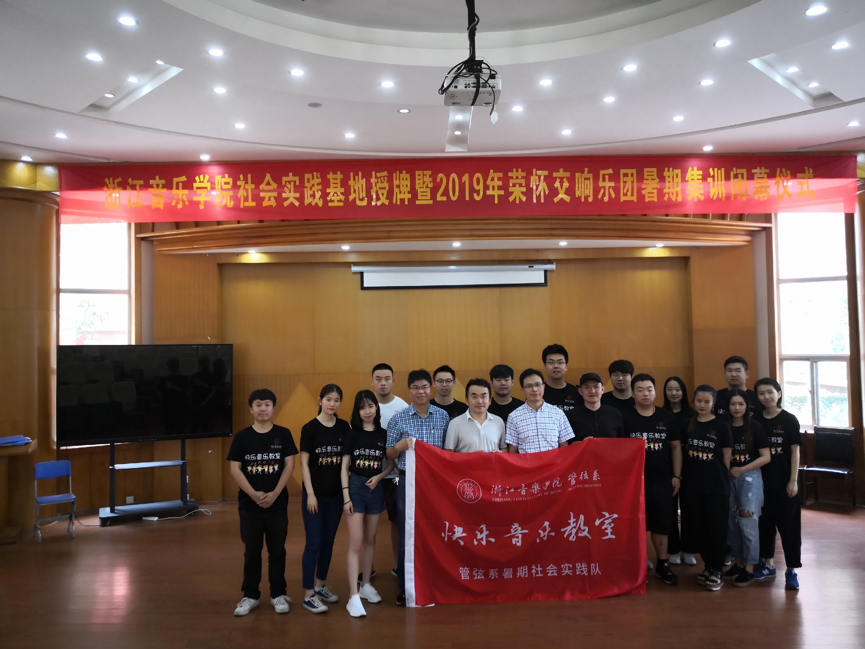 为深化校地合作,引导青年学生深入社会投身实践,7月11日上午,浙江音乐学院管弦系在诸暨荣怀国际学校报告厅举行“大学生社会实践基地”共建暨“快乐音乐教室”2019荣怀交响乐团集训闭幕仪式。