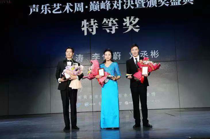 7月30日上午,2019黄龙音乐季·声乐艺术周巅峰对决赛暨颁奖典礼在张家界武陵源黄龙哈利路亚音乐厅举行。现场,12位巅峰对决挑战者在近千人的激烈角逐中脱颖而出,展开王者之战。我院声乐歌剧系青年教师刘涛于29日经过激烈比拼,荣获专业美声组—教师和专业院团演员组金奖,并获得了美声组唯一的巅峰对决名额。最终,在巅峰对决中,刘涛以完美的声音、强烈的艺术感染力赢得了评委的高度认可(现场投票15票)和现场观众的热烈掌声,获得了象征最高荣誉的2019黄龙音乐季·声乐艺术周特等奖30万元艺术发展资助金。