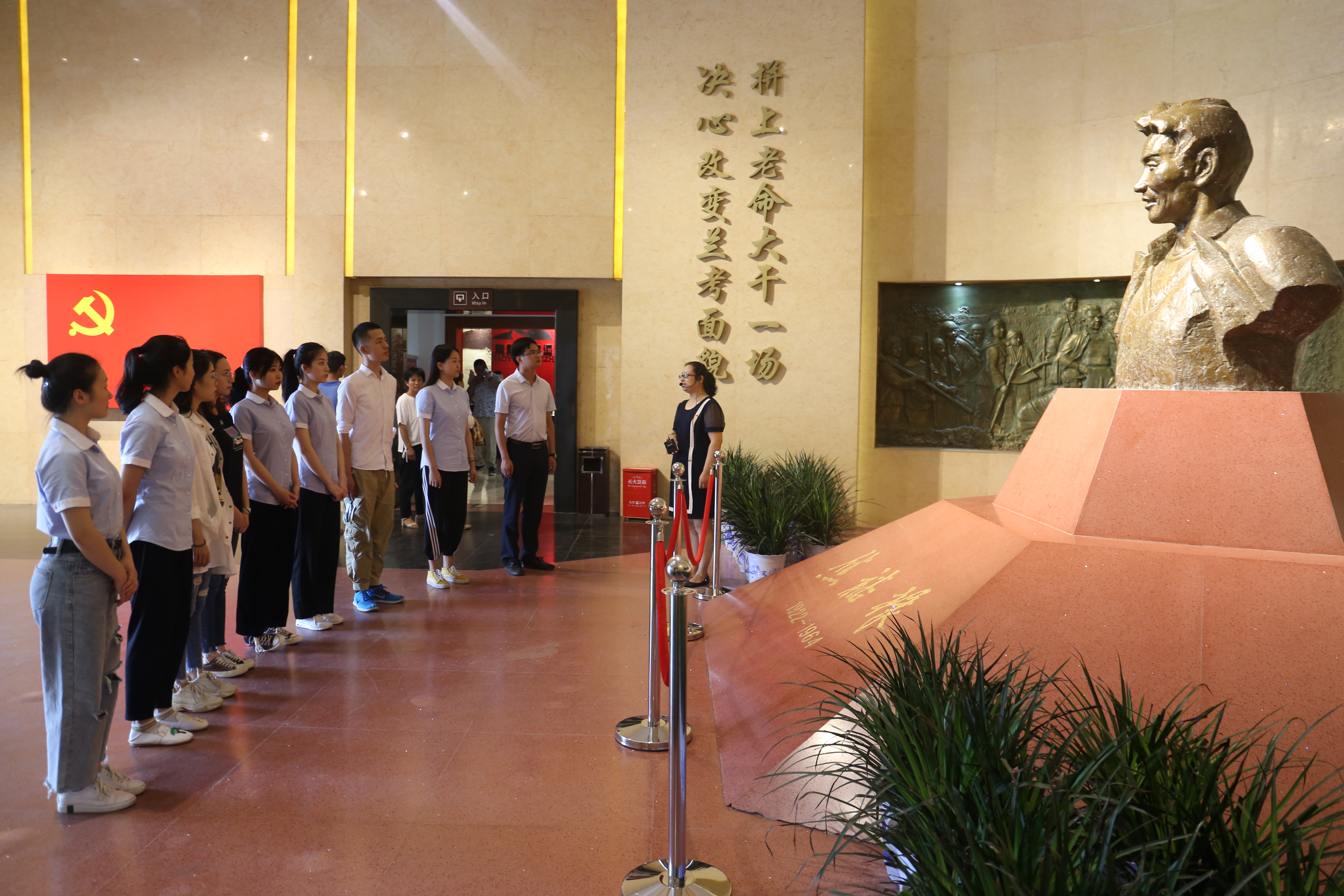 为纪念全面抗战爆发82周年,回首烽火岁月,缅怀革命先辈,感悟伟大思想,以昂扬的奋斗精神投身脱贫攻坚最前线。实践团师生首先来到了兰考县焦裕禄纪念馆,缅怀革命先烈,传承红色精神,开启暑期社会实践“第一堂现场课”。