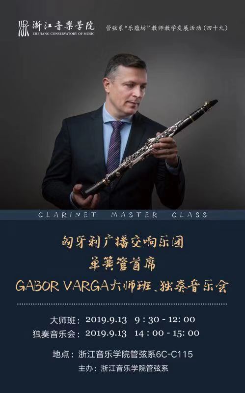 匈牙利广播交响乐团单簧管首席GABOR VARGA大师班、独奏音乐会