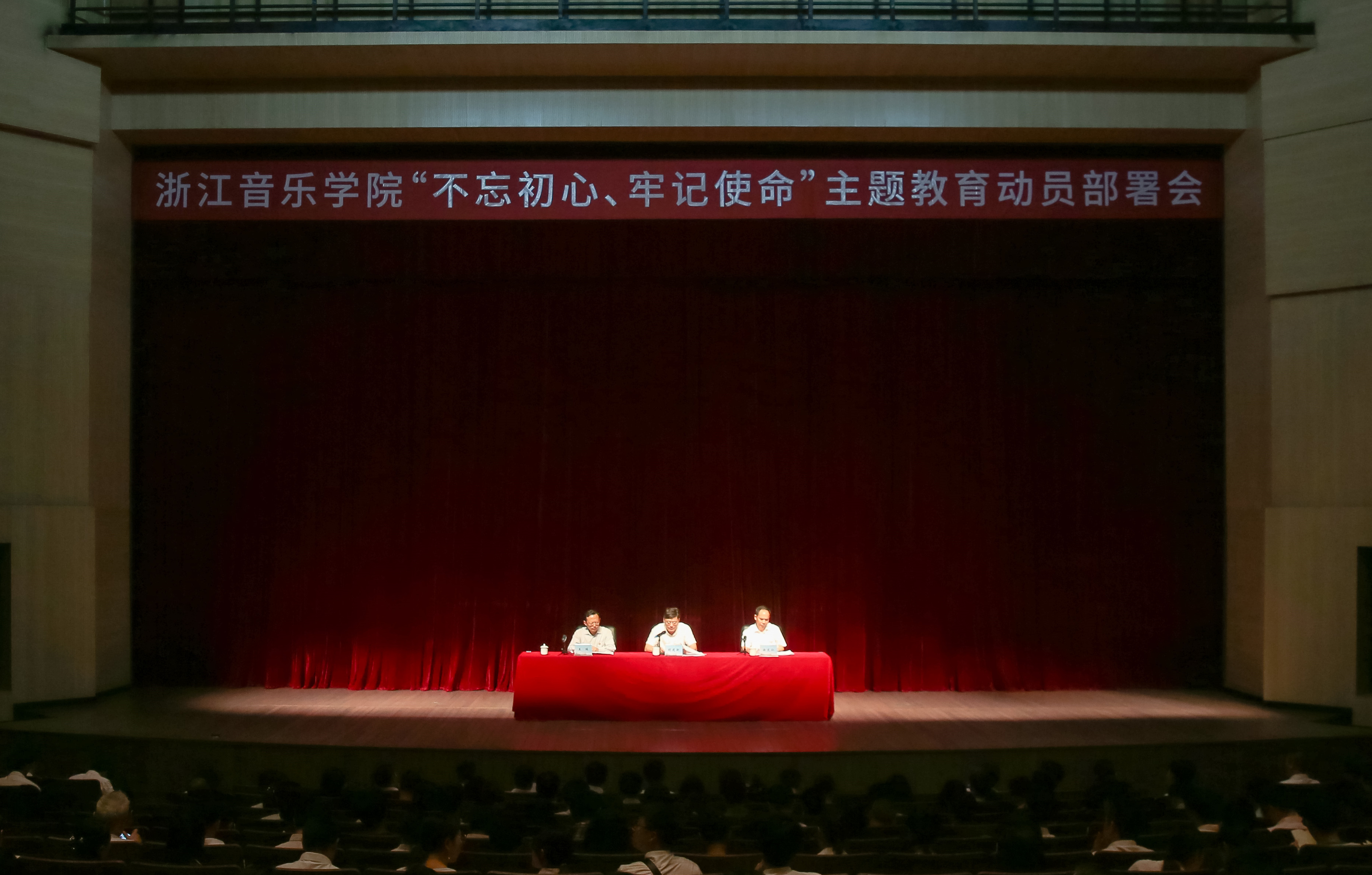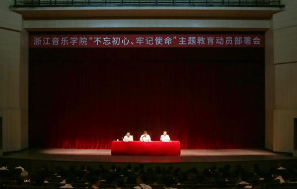 胡建新强调,开展“不忘初心、牢记使命”主题教育是党中央立足世界百年未有之大变局,立足中国特色社会主义事业全局作出的重大战略部署。要深刻认识开展主题教育的重要意义,用习近平新时代中国特色社会主义思想武装头脑,不断增强“四个意识”、坚定“四个自信”、做到“两个维护”。要认真贯彻新时代党的建设总要求,努力把学院各级党组织建设得更加坚强有力,教育引导全院党员干部自觉践行党的根本宗旨,把群众观点、群众路线深深植根于思想中、具体落实到行动上,不断夯实党的根基和群众基础。要充分发挥浙江“三个地”的政治优势,大力弘扬“红船精神”和浙江精神,激励全院党员干部勇担职责使命,秉承“事必尽善”校训精神,真抓实干,砥砺奋进,为推动“高水平一流音乐学院”建设、“两个高水平”建设、“文化浙江”建设、全面实施高教强省战略贡献浙音力量。