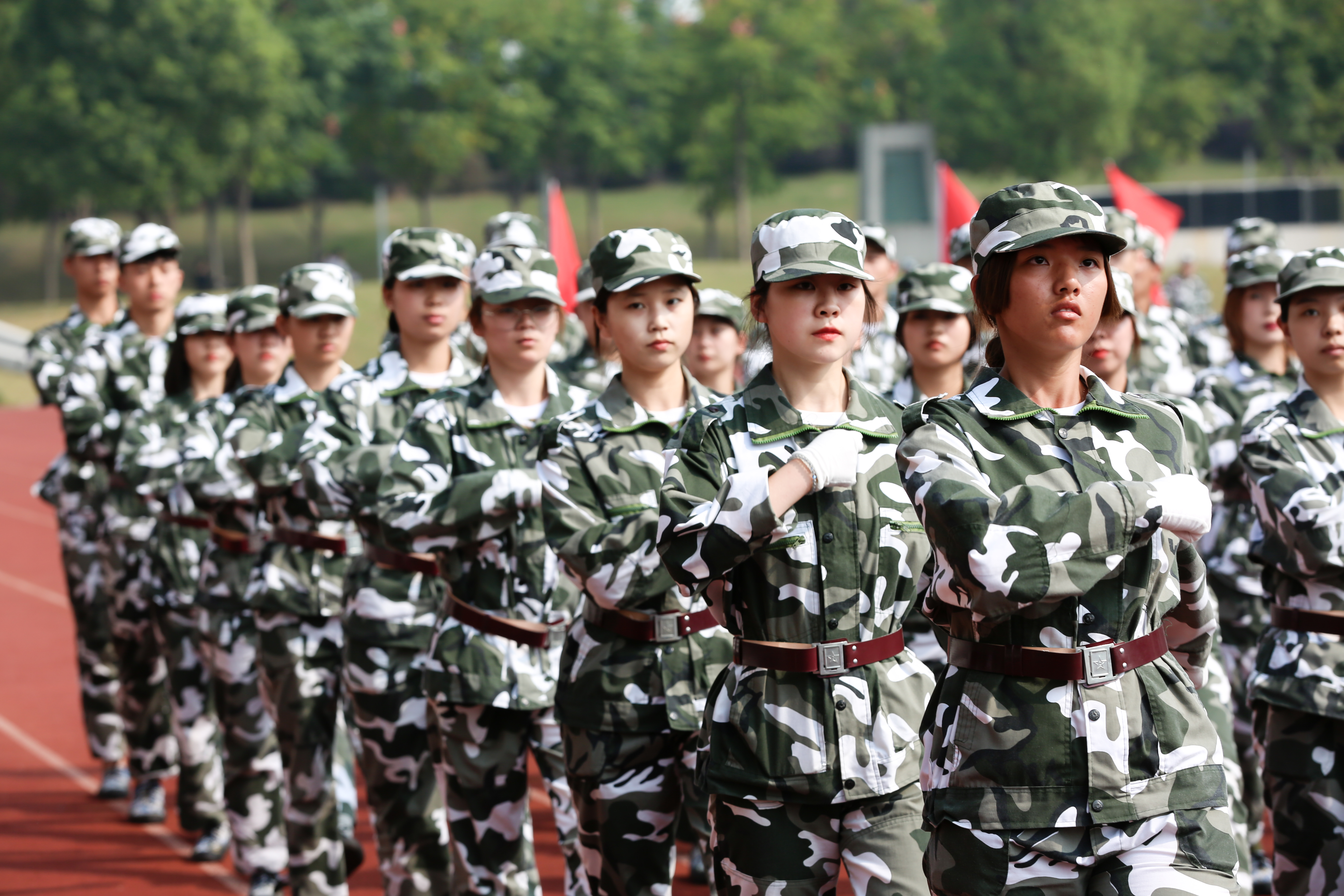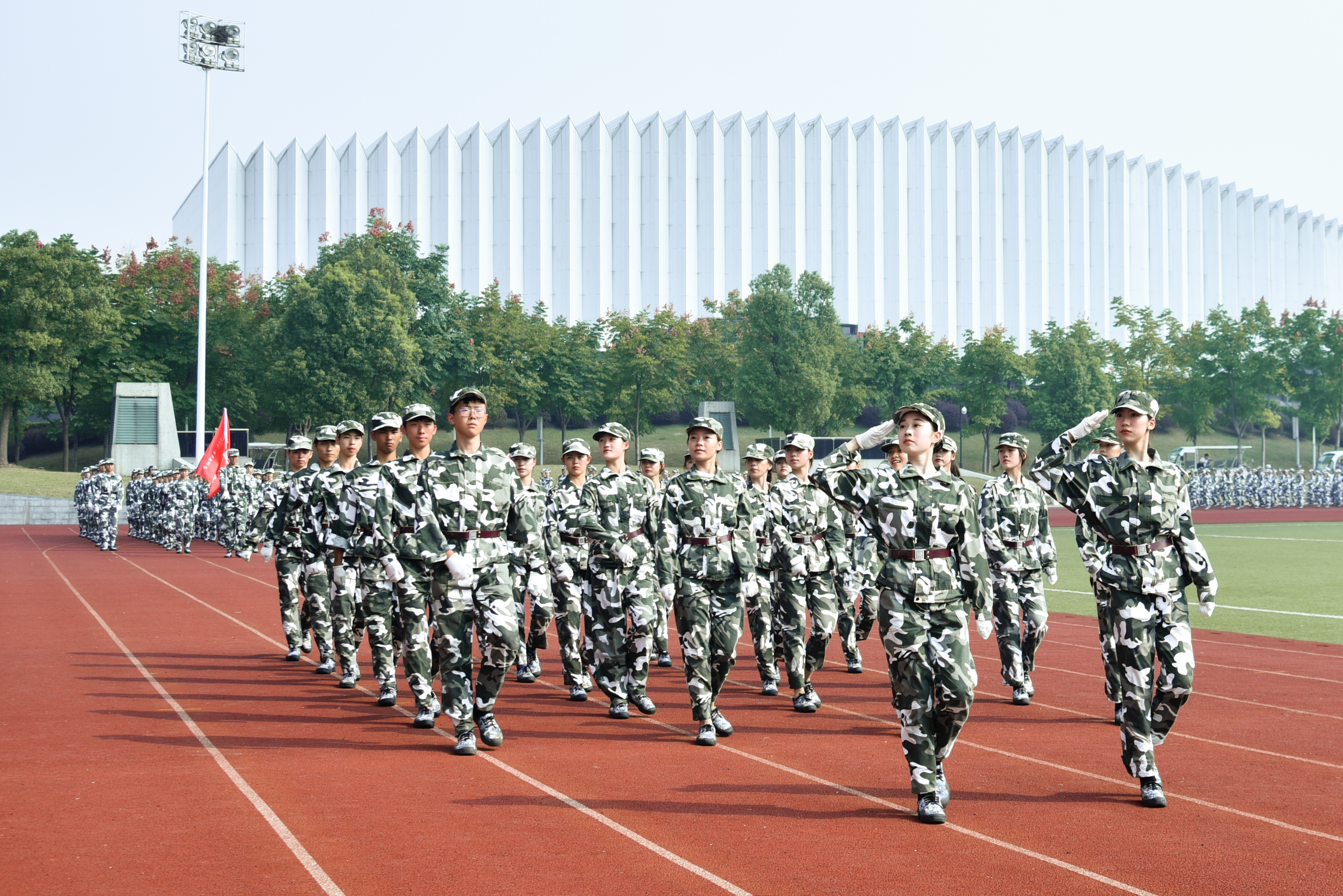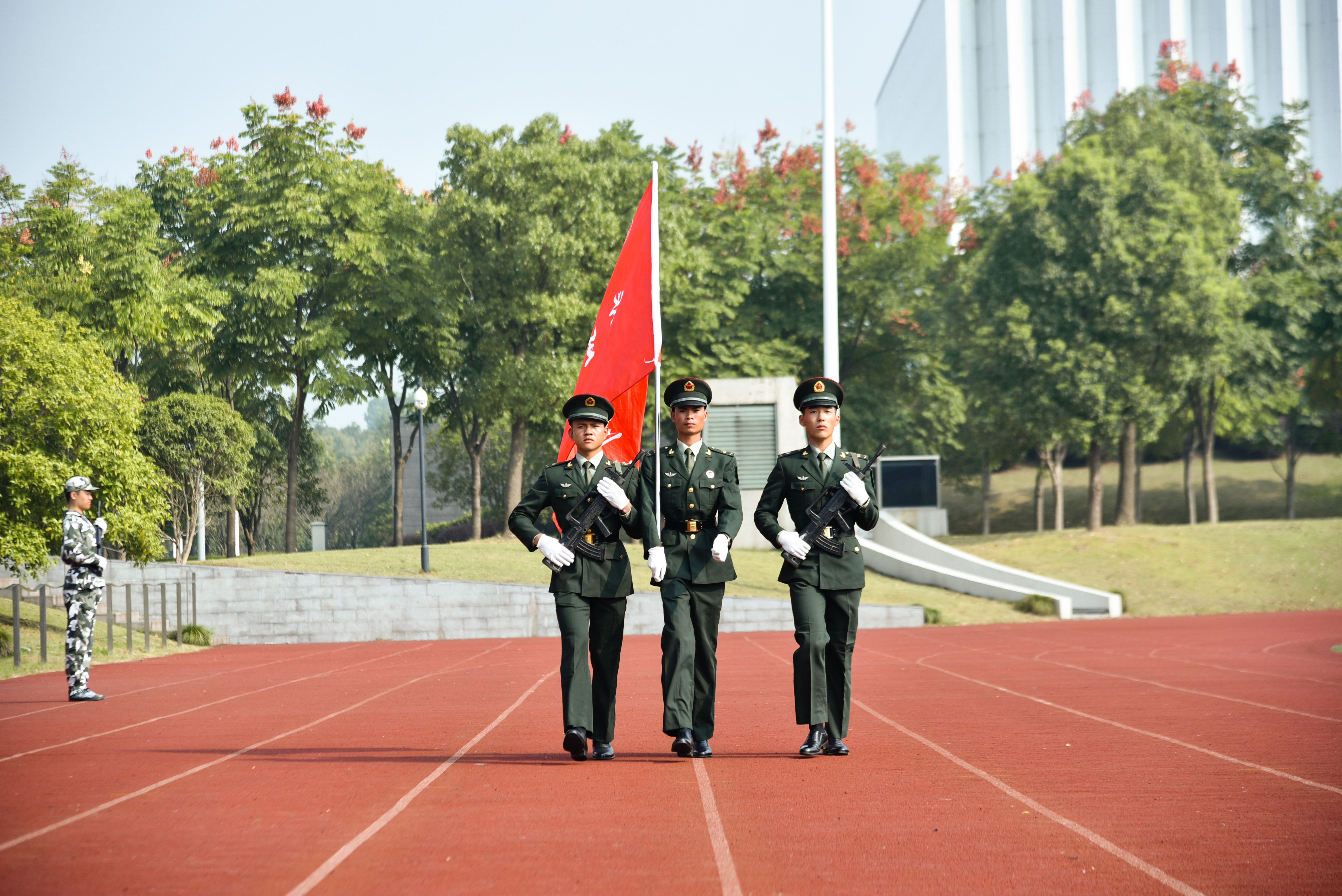 大会在庄严的国歌声中拉开帷幕。随后,标兵就位、迎营旗,护旗手迈着稳健的步伐正步行过主席台,以标准的军礼表达最诚挚的敬意。