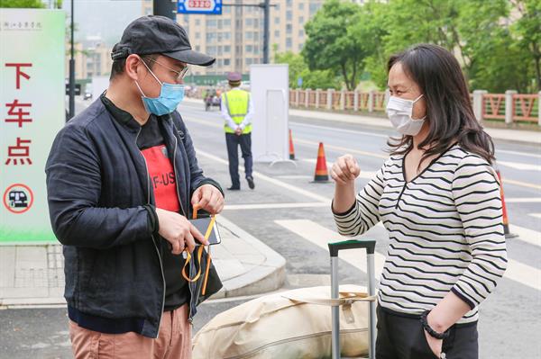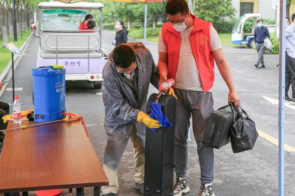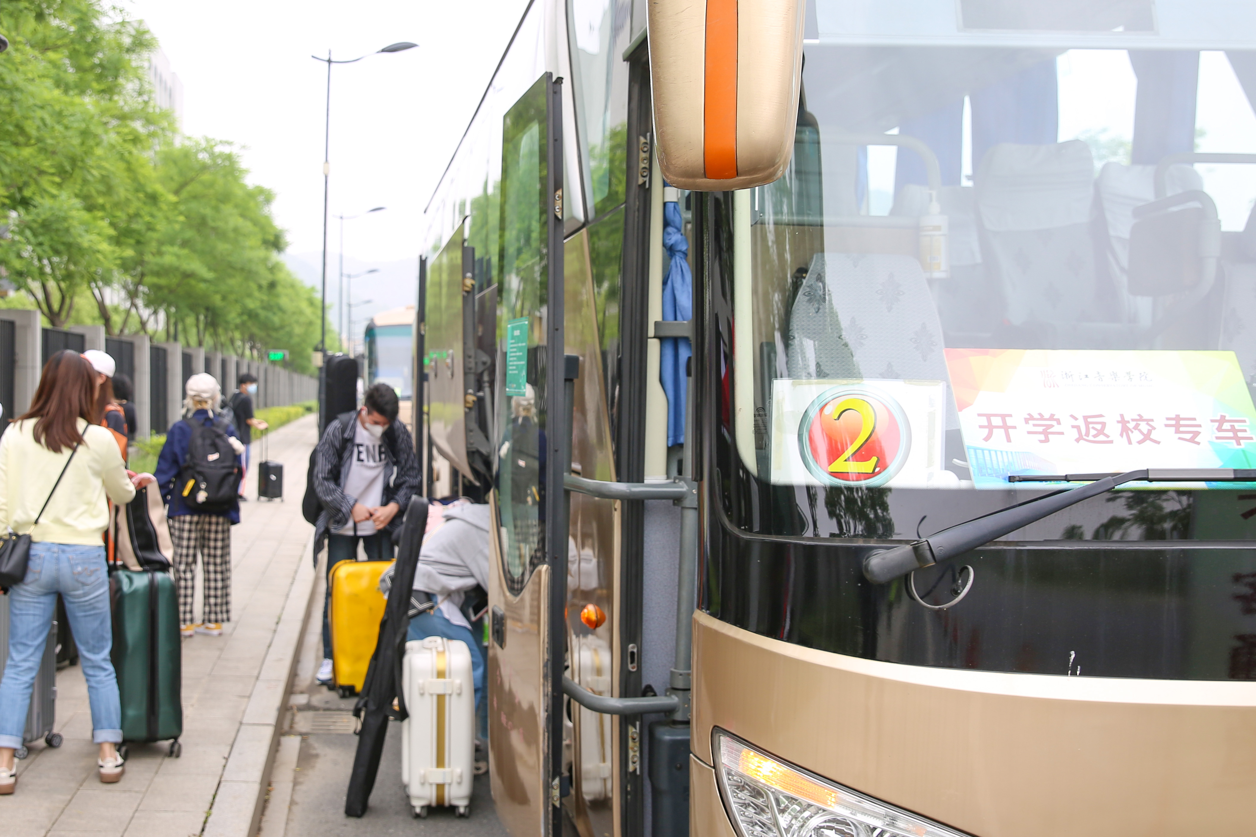 返校首日,工作人员认真、细心,为学生提供贴心服务。返校学生密切配合,遵守秩序,入校报到各环节进行顺利,现场井然有序。校园内,各系辅导员、机关党总支党员志愿者、乐典公司、保卫处等工作人员全部就位、严阵以待,以饱满的精神面貌和热情周到的服务引导,迎接返校学生。辅导员及时和同学们对接,了解同学们的学习情况、身体情况、就业规划等内容,并现场为同学们办理相关手续。工作人员有序指挥送客车辆即停即走,并引导学生们有序进行“一核二测三通过”,无异常情况才能进入校园,还为同学们提供大件行李消杀和搬运,发放健康包服务。校园外,机关党总支党员志愿者在火车站、机场为回杭的学生提供返校服务,确保学生人身健康安全。