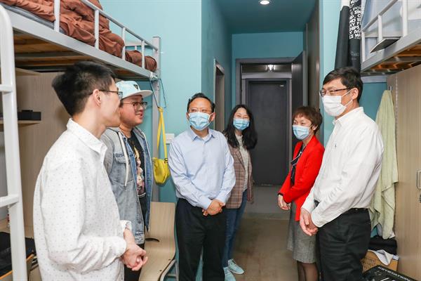 5月10日,学院迎来毕业年级学生返校报到。学院领导胡建新、王瑞、贾秀英、张伟波,相关系部负责人分别来到西门学生返校报到检测点、食堂、学生寝室楼检查防疫工作,迎接首批学生返校。